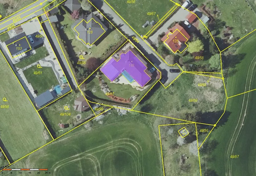 Jedná se o parcelu č. 148, budova s č.p. 54 - zastavěná plocha a nádvoří, výměra 295 m2, parcela č. 49/57, zahrada, výměra 705 m2 a podíl na pozemku parcela č. 49/54, příjezdová komunikace.