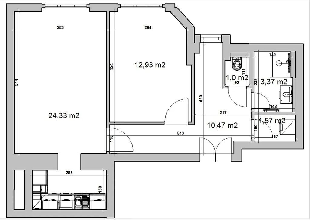Ložnice orientovaná do klidného vnitrobloku. Obývací pokoj s odděleným kuchyňským koutem.