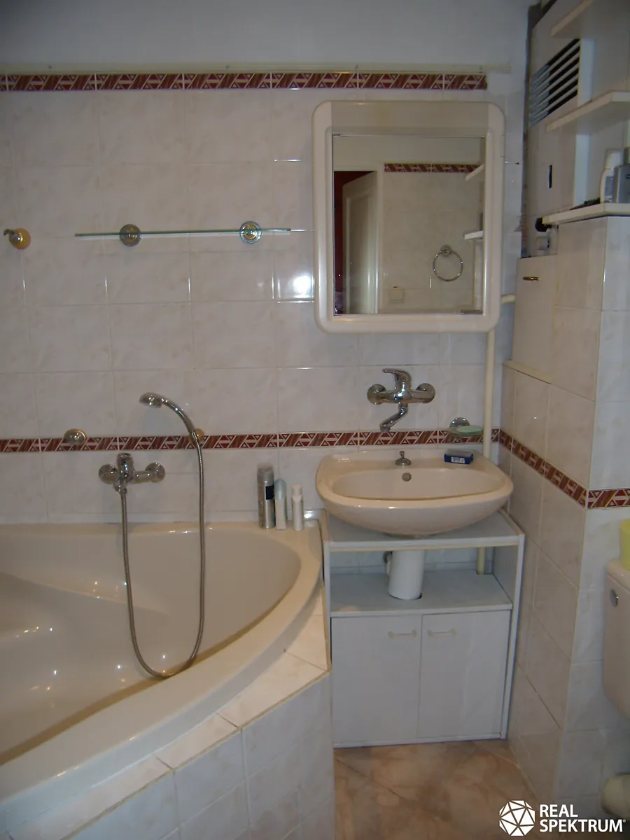 WC v bytě je jako samostatná místnost, orientace oken je severo-jižní, vytápění zajišťují lokální plynová topidla "vafky" a TÚV ohřívá elektrický bojler.