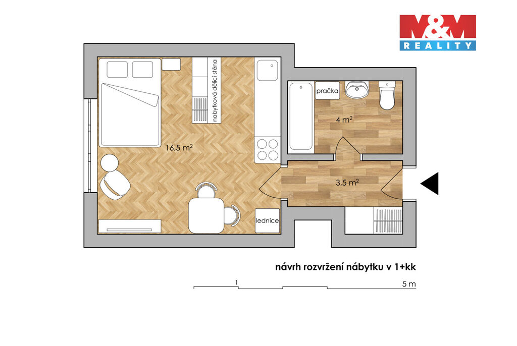 Byt je ideální pro jednotlivce nebo pár, kteří hledají praktické a cenově dostupné bydlení. K nastěhování ihned.