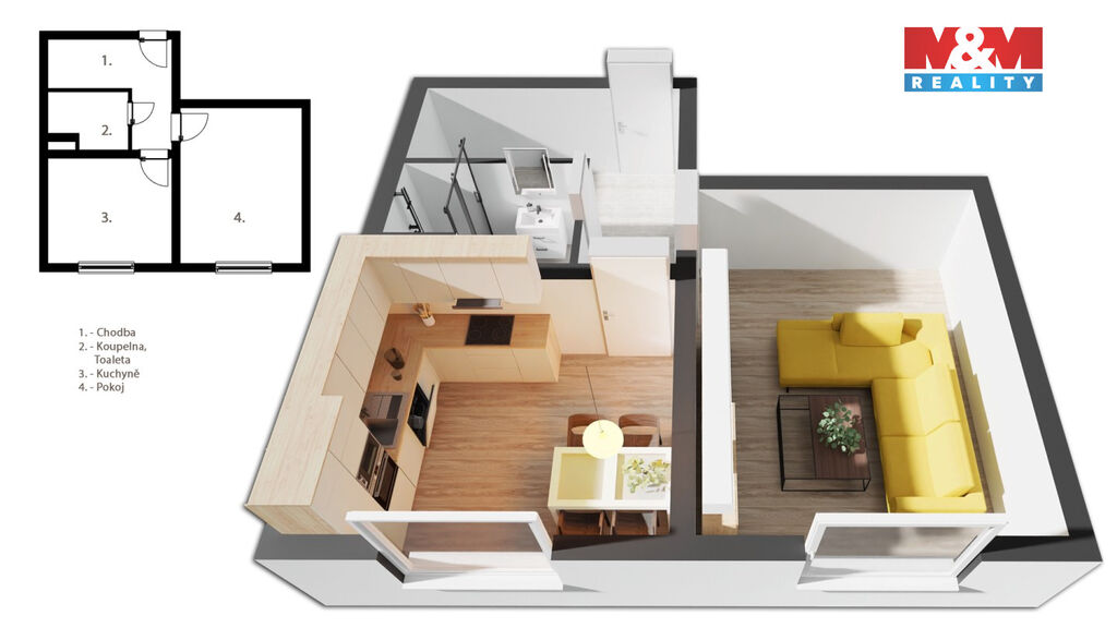 Byt je v dobrém stavu a představuje ideální volbu pro jednotlivce nebo pár, kteří hledají pohodlné bydlení za příznivou cenu. Dispozice bytu je prakticky řešená. Součástí je prostorný pokoj s dostatkem denního světla, kuchyň s místem pro jídelní stůl a koupelna.
