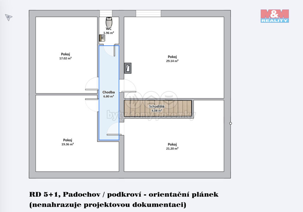 Další 4 pokoje a samostatné WC se nachází v prvním poschodí.