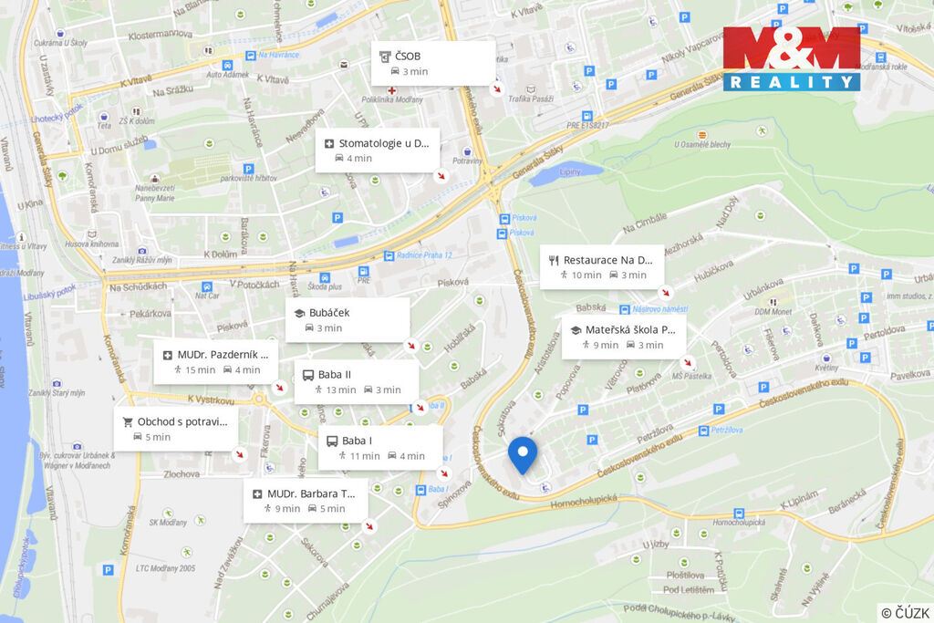 Hledáte pohodlné bydlení v klidné části Prahy s výbornou dostupností do centra? Nabízíme k pronájmu moderní a světlý byt 2+kk o ploše 44 m² s balkonem, který se nachází v kompletně zrekonstruovaném a udržovaném domě v oblíbené lokalitě Praha 4 – Modřany, ulice Semická. Byt je částečně zařízený – k dispozici je kuchyňská linka, praktické úložné skříně a nová pračka. Dispozice nabízí obývací pokoj s kuchyňským koutem, ložnici, koupelnu a vstupní chodbu. Balkon je ideální pro ranní kávu či večerní relax. V těsné blízkosti domu je zastávka autobusu Platónova, odkud se během pár minut dostanete na tramvajové nebo vlakové spojení (Modřany, Modřanská škola). Do centra Prahy se pohodlně dostanete přibližně do 25 minut. Okolí nabízí cyklostezku podél Vltavy, Freestyle Park Modřany, minigolf, venkovní posilovny, Modřanskou rokli i zookoutek v Chuchelském háji.