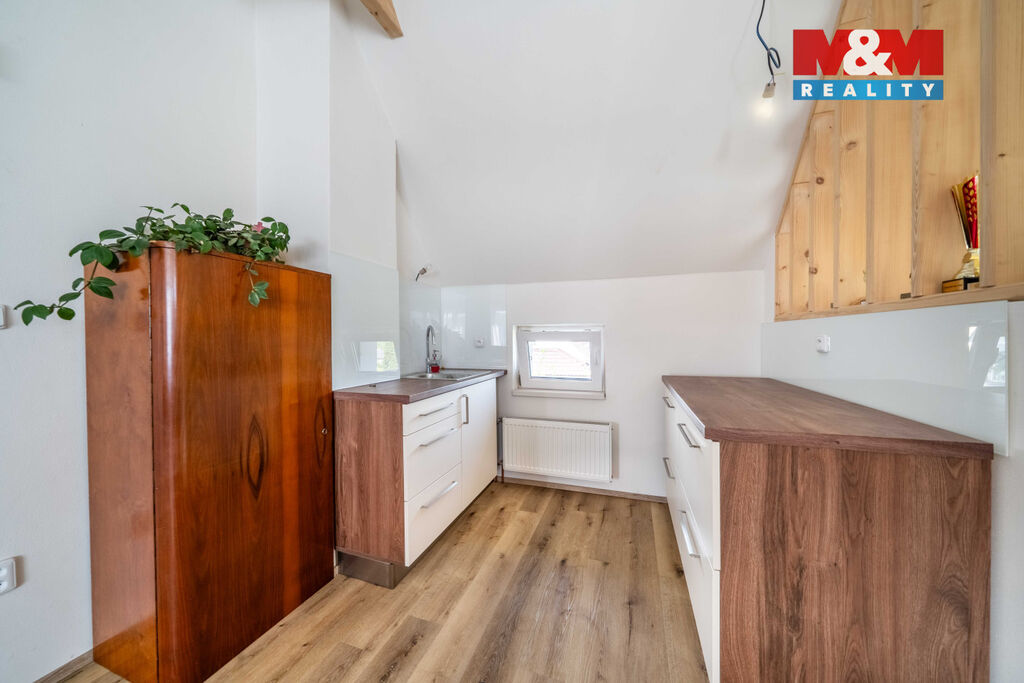K prodeji třípodlažní rodinný dům s garáží, na pozemku o vel. 742 m2 v Mirošově. Prošel v r. 2021 kompletní rekonstrukcí rozvodů, kanalizace, topení a interiérů. Je zateplený a má plastová okna. Kolaudace proběhla na podzim 2022. Vodovod, kanalizace a plyn napojeny. Vytápění zajištěno kotlem na pevná paliva se zásobníkem, který je napojen na nádrž 1000 l, patra lze vytápět jednotlivě. Každé patro má také svůj bojler pro ohřev vody. Dále je ve sklepě řídící jednotka k solárním panelům a nabíjecí baterie o kapacitě 10kW. V každém patře je samostatný rozvaděč, který je napojen na baterii pro případ výpadku proudu. Sklep je možné upravit do kancelářských či jiných prostor. Je zde připravena kanalizace i voda tak, aby bylo možné vystavět koupelnu, kuchyni. Sklep má také připraveno samostatné vytápění. V zadní a horní části garáže je zrekonstruován prostor pro pracovnu a skladovací prostory. Na nádvoří je možné parkovat. K užívání také nádrž dešťové vody o objemu 4m3. Dokumentace k dispozici