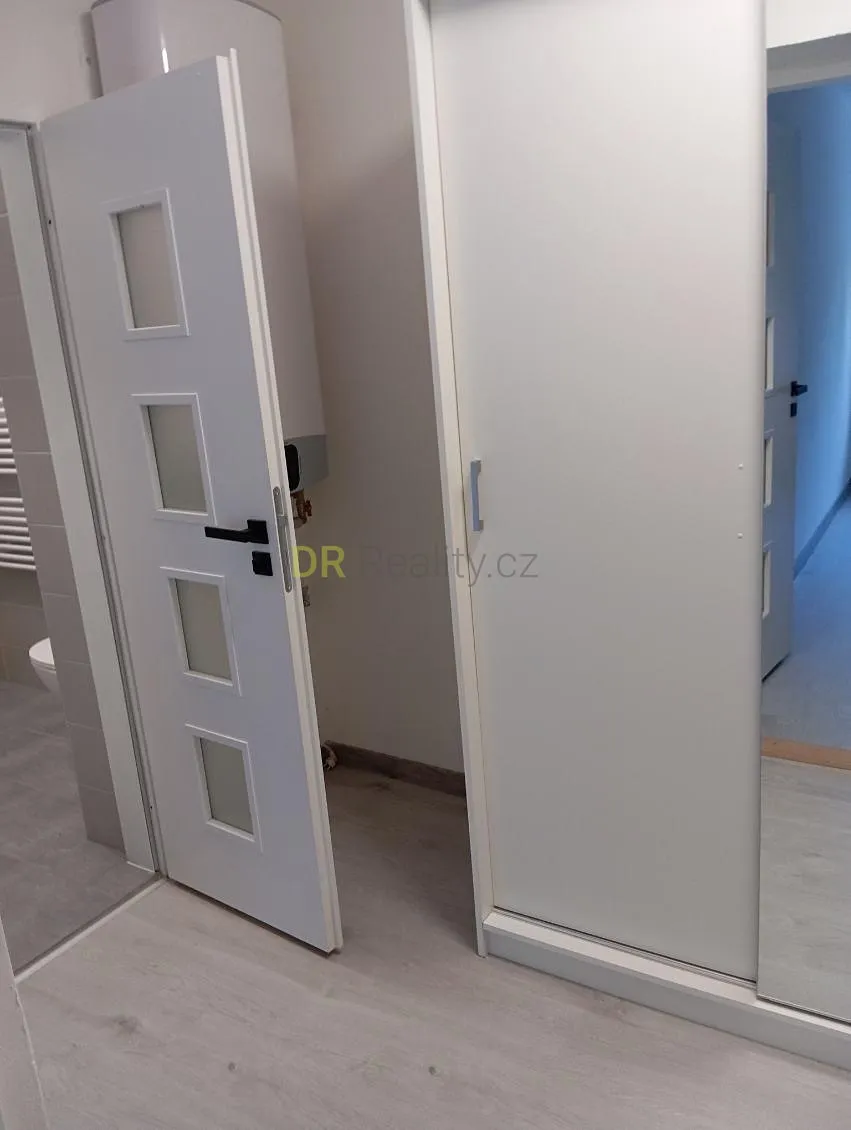 V chodbě velká šatní skříň. V přízemí možnost využití kolárny. Výhodou bytu je klimatizace, která se používá k topení, velmi nízké náklady na elektřinu 2.000,- /2.os./měsíčně.Nájem 12.000,- + záloha na vodu. Elektřina se přepisuje na nájemníka. Kauce jeden měsíční nájem + Provize RK. Vhodné pro jednotlivce nebo mladý studující , pracující pár.