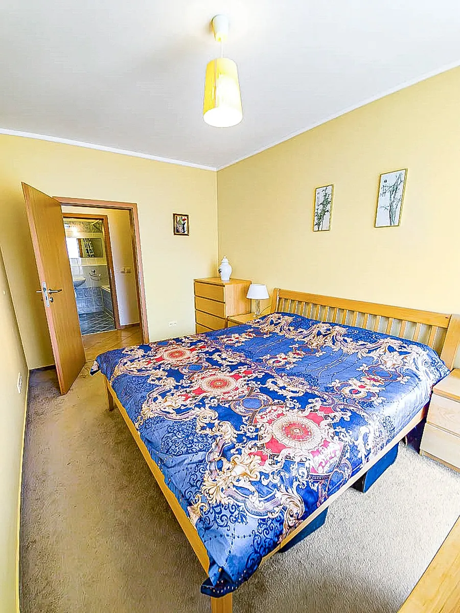 Dvě ložnice jsou navrženy s důrazem na klid a soukromí. Hlavní ložnice je vybavena manželskou postelí a velkou šatní skříní, druhá ložnice může sloužit jako dětský pokoj, pracovna či pokoj pro hosty.