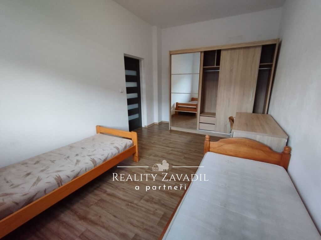 Byt nabízí vstupní chodbu, obývací pokoj s kuchyňskou linkou s vestavěnými elektrospotřebiči (digestoř, sklokeramická varná deska, elektrická trouba) a dvě samostatné ložnice včetně zařízení.
