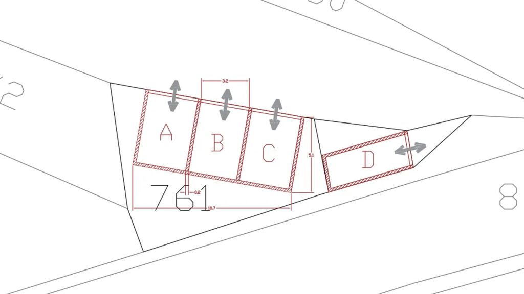 Vzhledem k probíhající změně územního plánu bude možné přistavět 3 další garáže, viz. obrázek, kde stávající garáž má písmeno D.