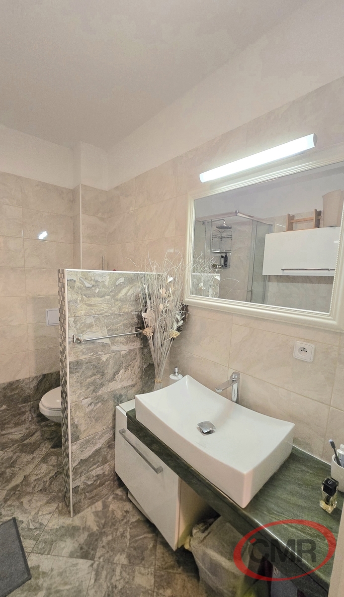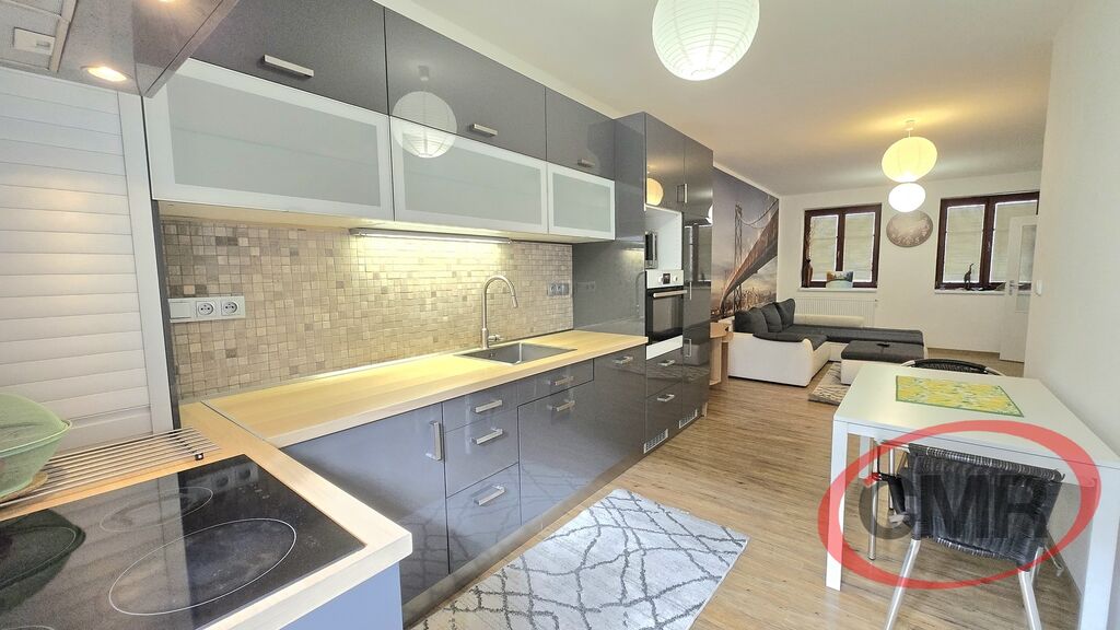 Byt se nachází v prvním nadzemním podlaží třípodlažního domu a lze jej snadno přístupnit díky bezbariérovému přístupu. Užitná plocha bytu dosahuje 57 m², což zajišťuje dostatek prostoru pro pohodlné bydlení. V bytě se nachází moderně vybavená kuchyň, která je spojena s obývacím pokojem, a uzavíratelnou ložnicí se vstupem na terasu. Vnitřní vybavení bytu zahrnuje kvalitní prvky, které přispívají k celkovému luxusnímu dojmu, jako jsou skvělé světelné podmínky či elegantní design.