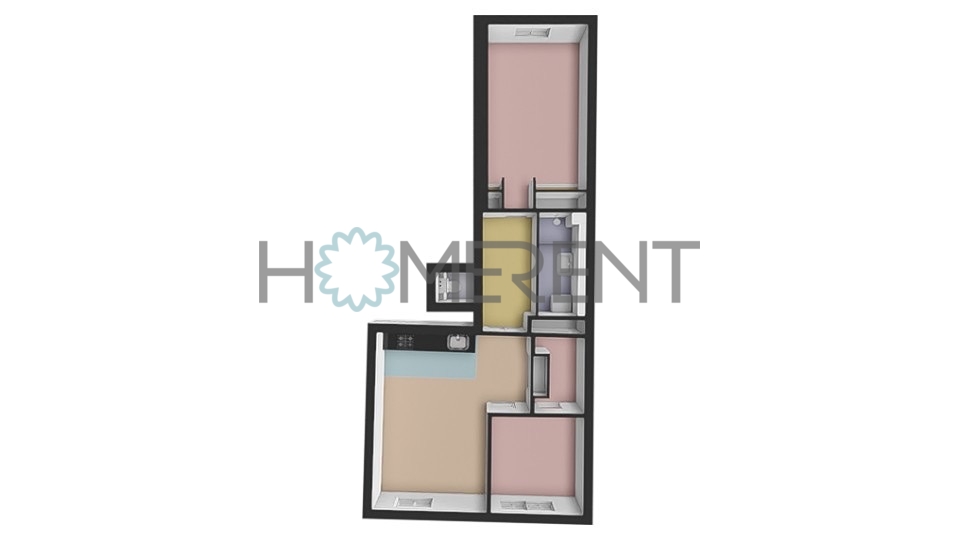 Nabízíme pronájem zařízeného bytu 3+kk v klasickém řadovém domě (70m²) v 1. patře.