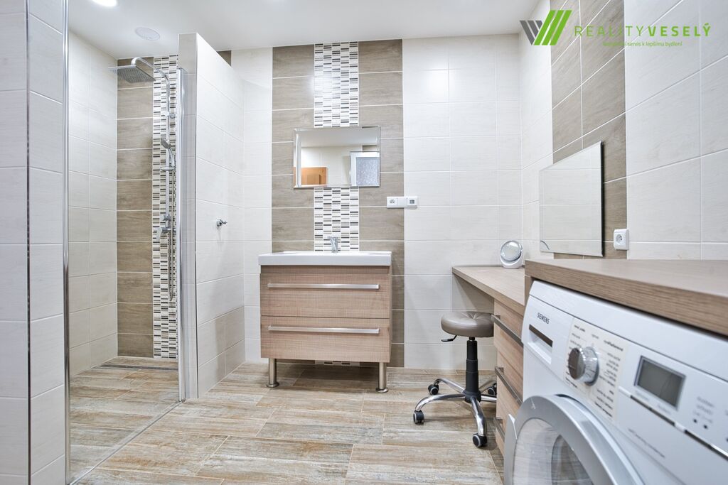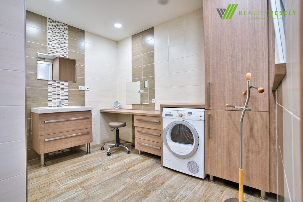 Suterén domu je díky sklepním oknům světlý a dobře využitelný – najdete zde skladové prostory, technické zázemí, vlastní studnu a prostornou průjezdnou garáž se sekčními vraty. Parkování je možné nejen v garáži, ale i na pozemku před domem.