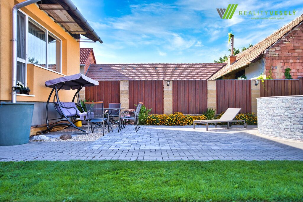 Za domem vás čeká klidná zahrada s posezením a maximálním soukromím, která přímo vybízí k vybudování relaxační zóny s bazénem, grilem nebo dětským hřištěm.