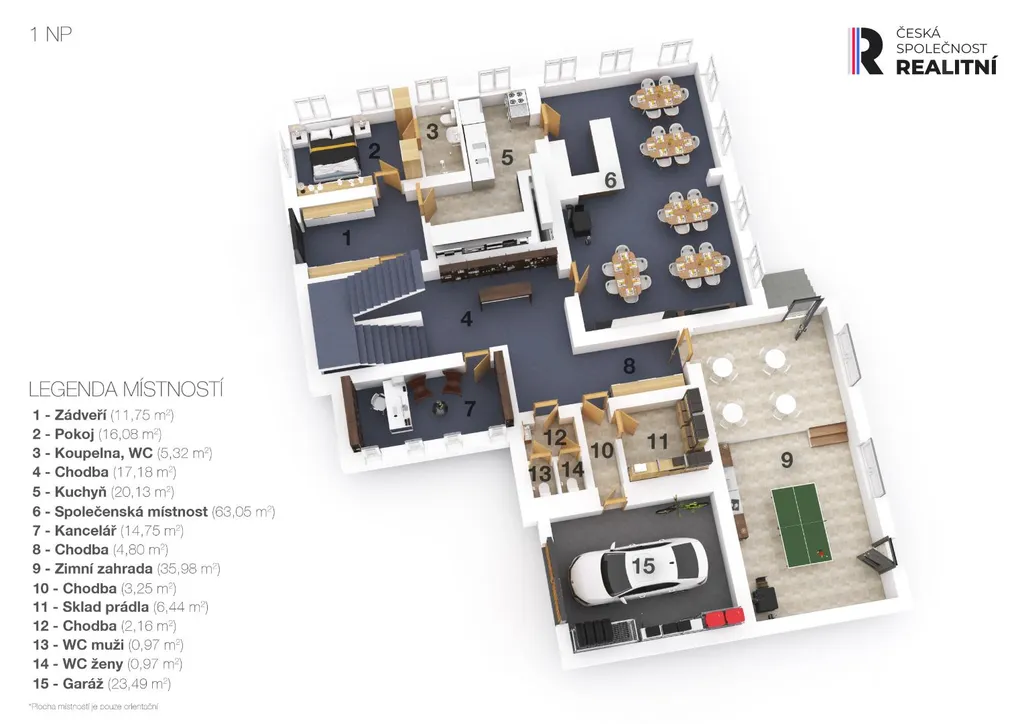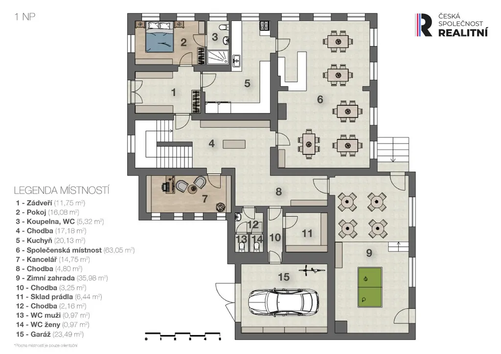- společenská místnost (30 míst), zimní zahrada (20 míst)