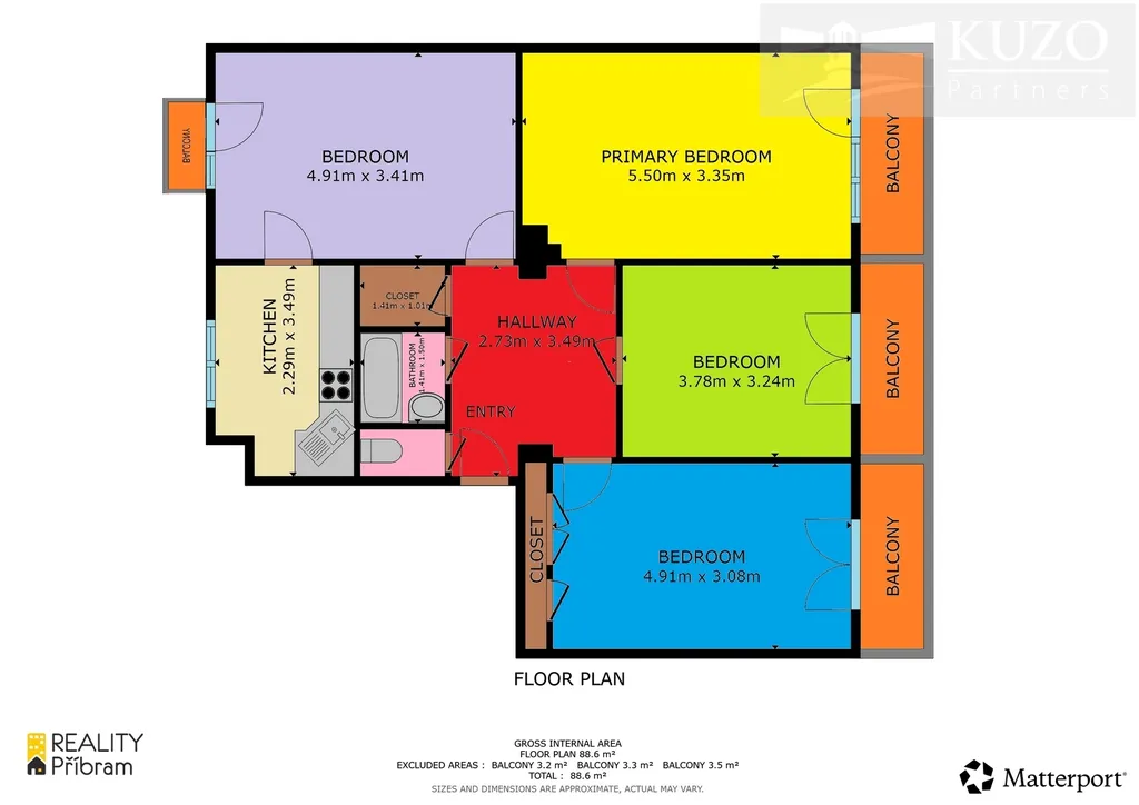 • Dispozice a Prostor: Praktický a velmi žádaný byt 4+1 (3 ložnice, obývací pokoj a samostatná kuchyně). Výměra dle katastru činí 85,5 m². Všechny prostory si můžete detailně prohlédnout v moderní 3D vizualizaci (Matterport, který uvadí plochu 88,6m2).