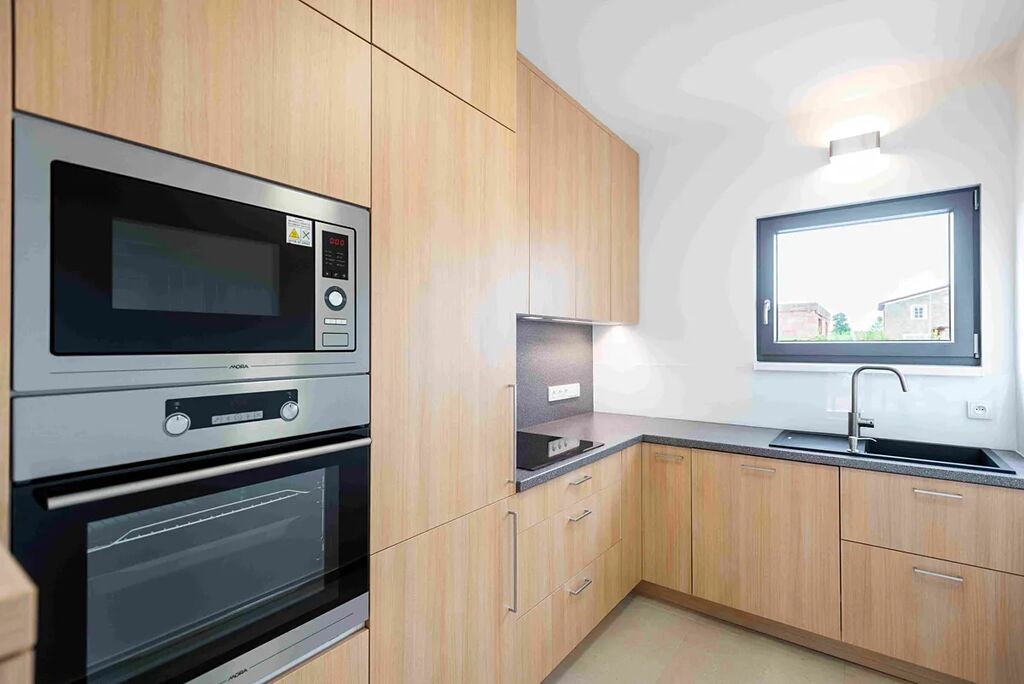 Každá jednotka má vlastní elektro kotel, jednotlivé místnosti mají individuální termostat ovládající podlahové topení, videozvonek, koupelnová sanita je od společnosti Vitra, Grohe, v přízemí kombinované WC s bidetovou sprškou, velmi kvalitní protihluková mezi bytová izolace, osazena všechna svítidla, vestavěné garnyže, elektrické venkovní žaluzie, panoramatické posuvné okno na terasu.