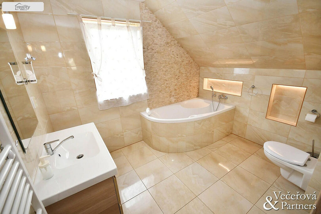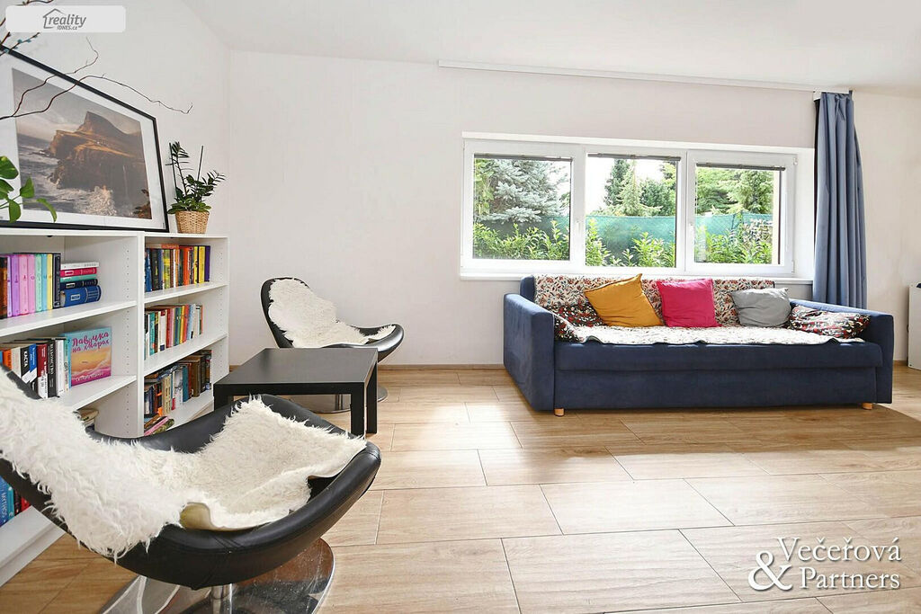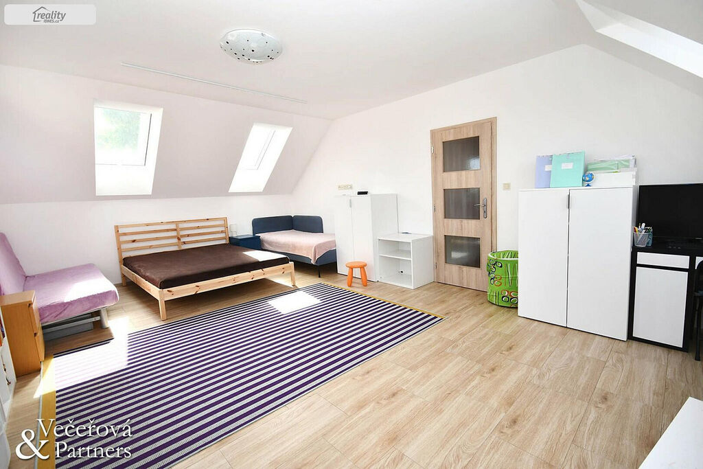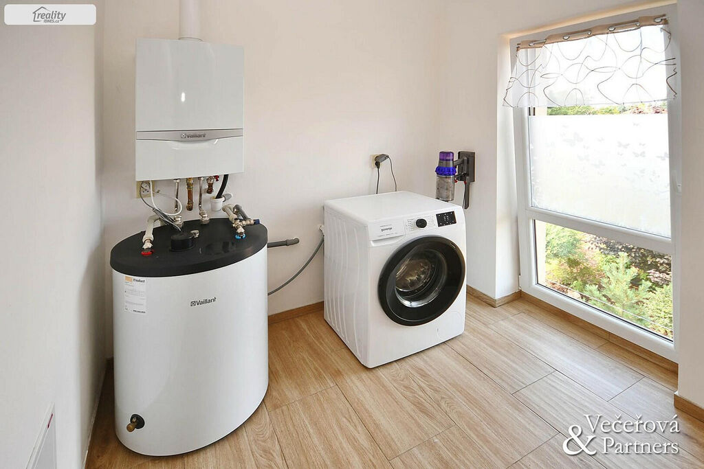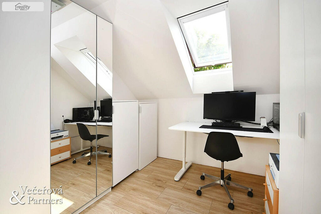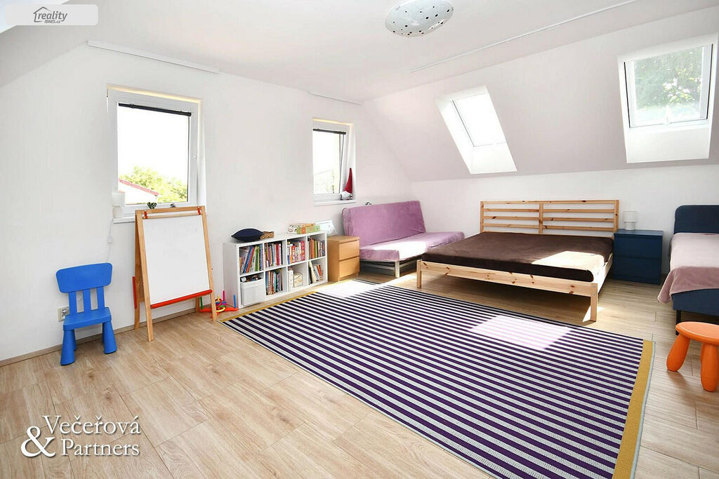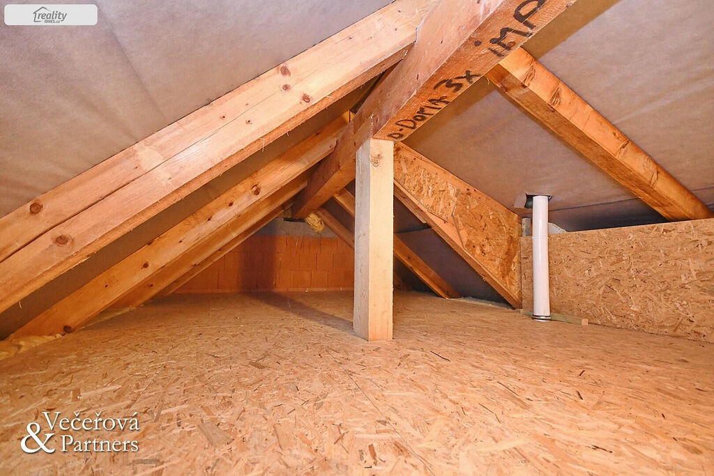 Dům disponuje čtyřmi prostornými pokoji, které nabízejí dostatek pohodlí pro celou rodinu. Horní velmi prostorný pokoj může být rozdělen na dva běžné pokoje. Výhodou je garáž s kapacitou pro dvě auta, a navíc venkovní parkovací místo před garáží. Prostorná terasa z boku domu na straně bez okolní zástavby je ideální pro venkovní posezení. Udržovaná zahrada nabízí naprosté soukromí.