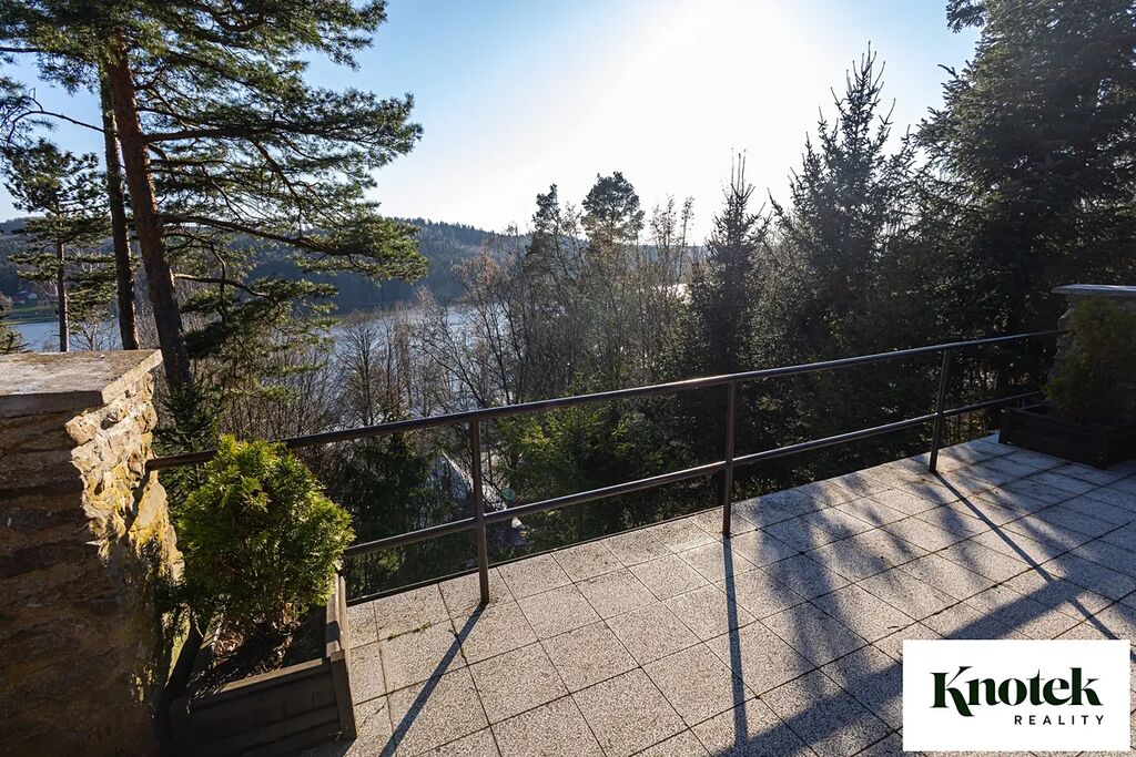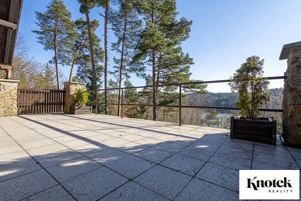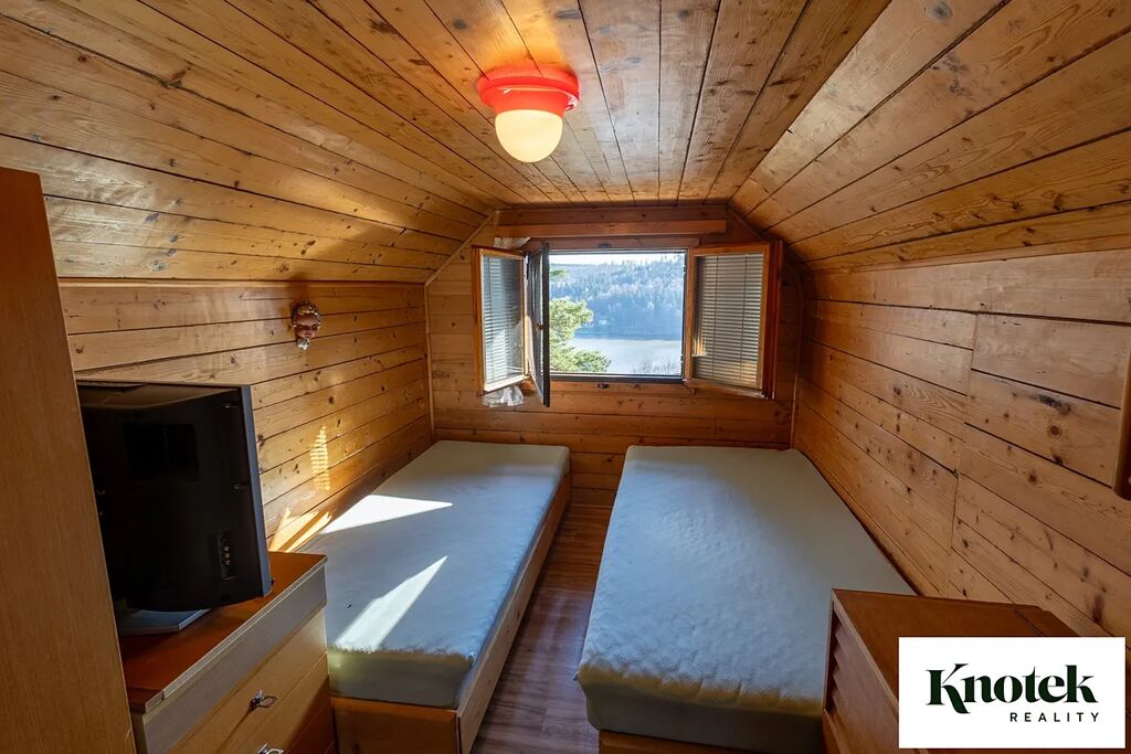 Nemovitost je napojena na elektřinu a vodu. Vytápění zajišťují krbová kamna, případně elektrické přímotopy. Z obývací části se vychází na prostornou terasu orientovanou směrem k vodní hladině – ideální pro ranní snídani nebo večerní posezení při západu slunce.