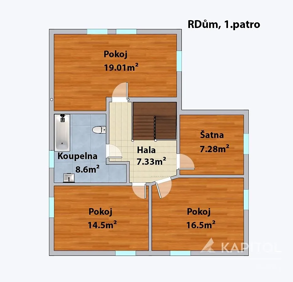• Dům je rozdělen na přízemí a 1.patro, poskytující dostatek prostoru pro celou rodinu.