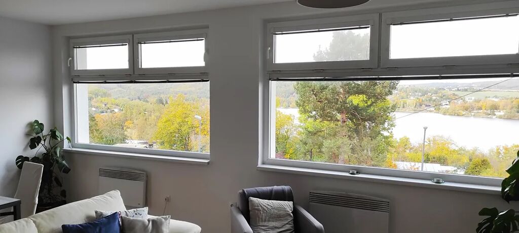 Nabízíme ke krátkodobému pronájmu (11/2025 - 4/2026) byt o dispozici 3+kk a výměře cca 100 m2, situovaný v prvním nadzemním podlaží budovy v atraktivní brněnské městské části Bystrc, na ulici Rakovecká. Z obývacího pokoje bytu je nádherný výhled na Brněnskou přehradu a do lesů ji obklopujících. Dispozičně byt sestává ze vstupní haly, tří samostatných/neprůchozích obytných místností a koupelny společné s wc, je kompletně vybavený (kuchyňská linka včetně všech spotřebičů, rozkládací rohová kožená sedačka, jídelní stůl, židle.... vše co je na fotografiích ) a připraven k užívání. Součástí nájmu jsou dvě parkovací stání a prostorná oplocená terasa ("předzahrádka") lemující vnější rohovou část bytu, určena výhradně pro potřeby uživatele bytu.