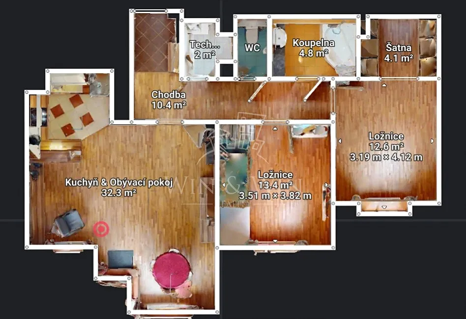 Byt si můžete prohlédnout v inzerci pomocí 3D prohlídky nebo nám rovnou napište a domluvte si prohlídku na místě.