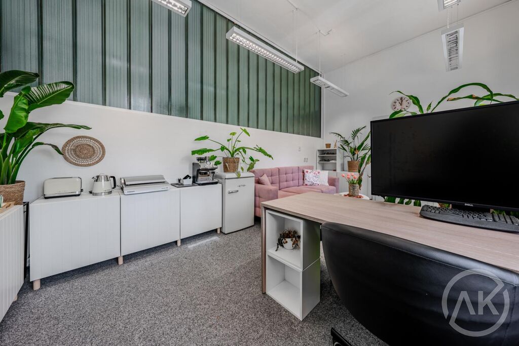 - je tady veškeré zázemí. Mimo kancelář samotnou tady najdete dámské i pánské toalety či kuchyni s varnou deskou a mikrovlnnou troubou,