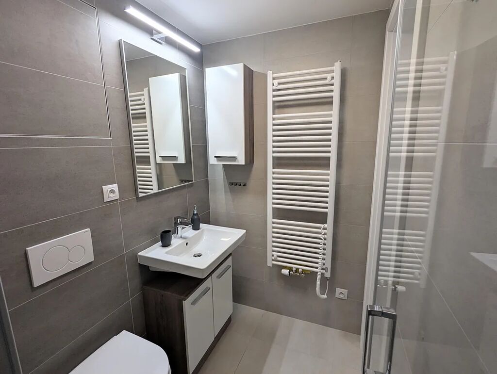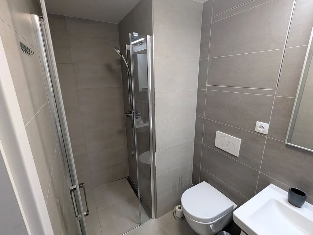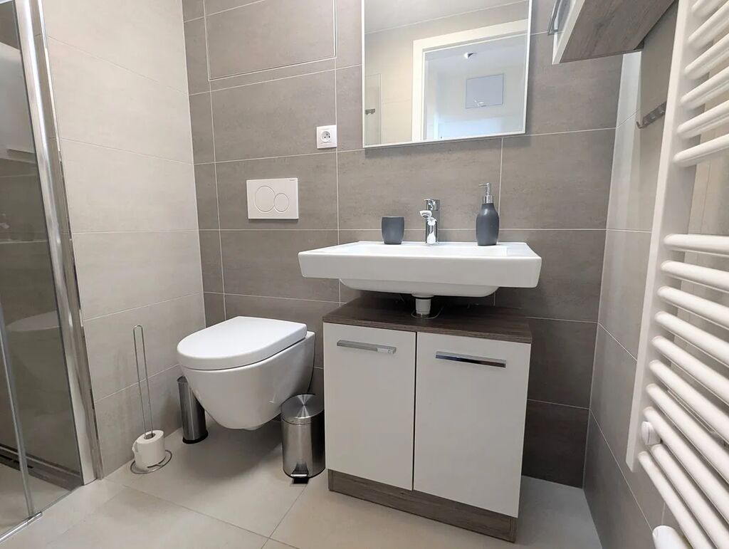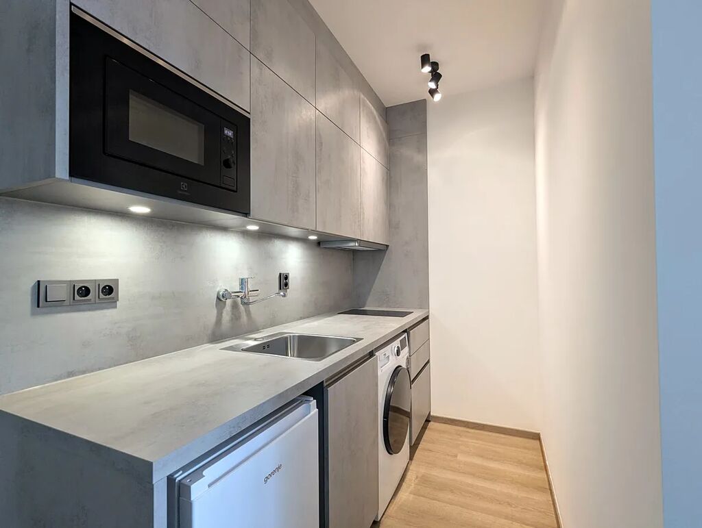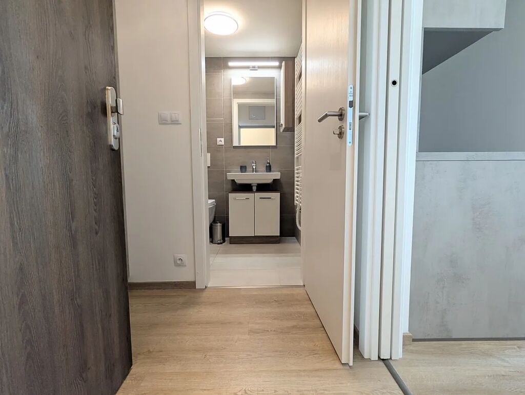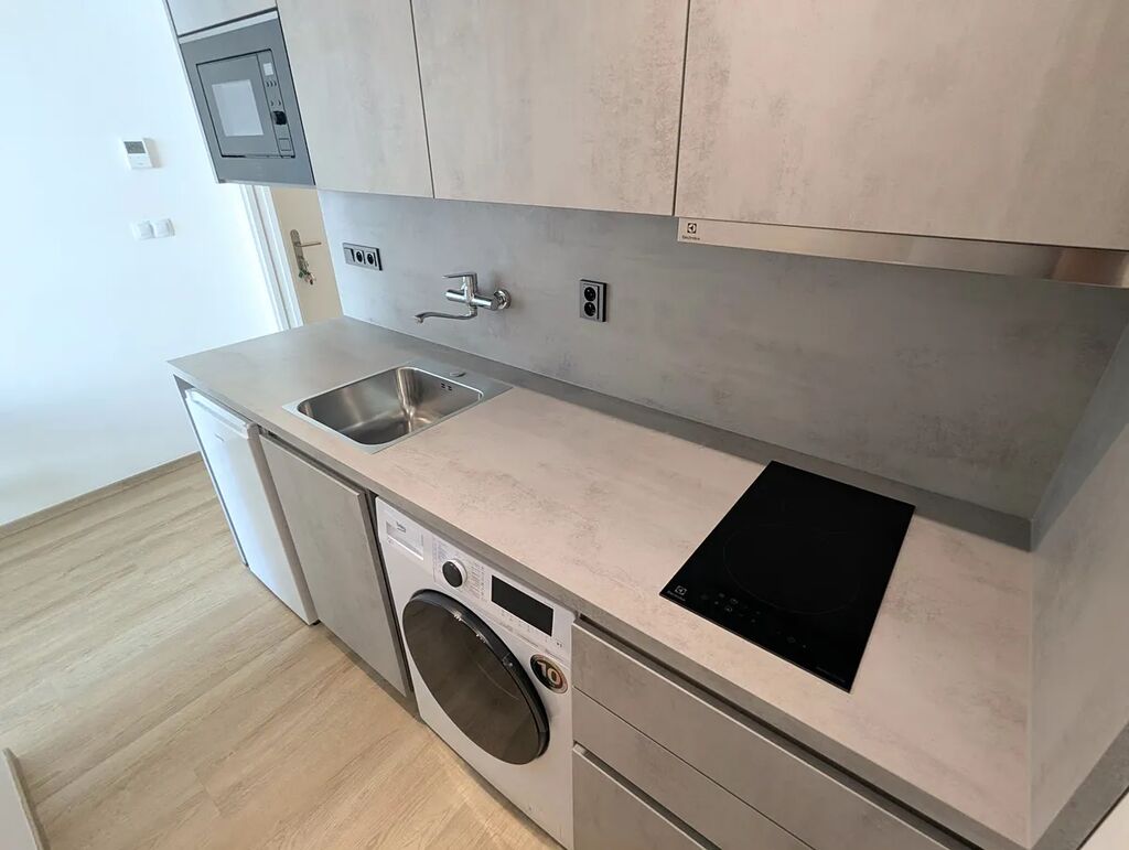 Nabízíme k pronájmu zcela nový, moderně zařízený byt 1+kk o výměře 27 m² v klidné části prestižního a vyhledávaného projektu Palác Trnitá nedaleko centra města. Vybavení tvoří dvoulůžko s kvalitní matrací, rozkládací pohovka, jídelním stúl a dvě židle, dále oddělený kuchyňský kout s vestavěnou indukční varnou deskou, mikrovlnnou troubou, digestoří, lednicí s mrazákem a pračkou se sušičkou. V předsíni jsou prostorné vestavěné skříně umožňující efektivní uložení věcí. Moderní koupelna je vybavená sprchovým koutem, umyvadlem, velkým zrcadlem a topným žebříkem. K bytu náleží vlastní sklepní kóje. Okna jsou opatřena elektricky ovládanými venkovními žaluziemi pro větší komfort a soukromí, internet je dostupný díky optické síti. Bezpečnost zajišťuje recepce s nonstop provozem a ostrahou.