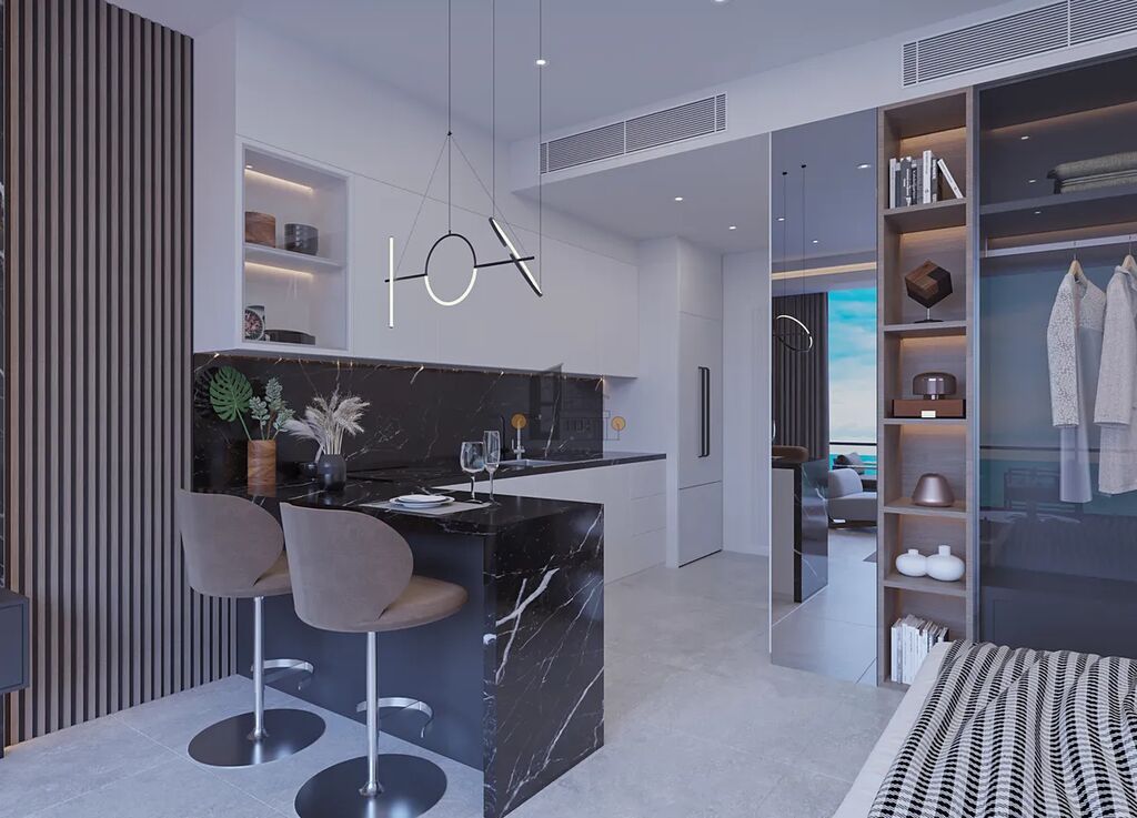 Nabízíme k prodeje moderní byt u moře za dostupnou cenu. Jde o byt - studio 1+kk (55 m² celkem, 47 m² čisté), ve 2. patře prestižního rezidenčního projektu Grand Sapphire Resort 2 s výhledem na moře a terasou.