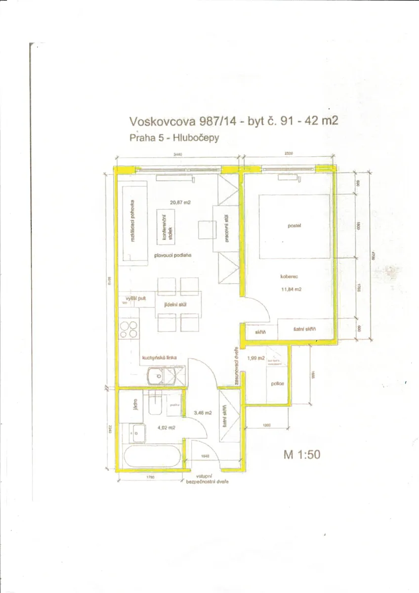 Nabízíme exkluzivně k pronájmu krásný slunný byt 2+kk o výměře 42 m2 v 7. patře panelového domu na adrese Praha 5, Hlubočepy, Voskovcova ul..