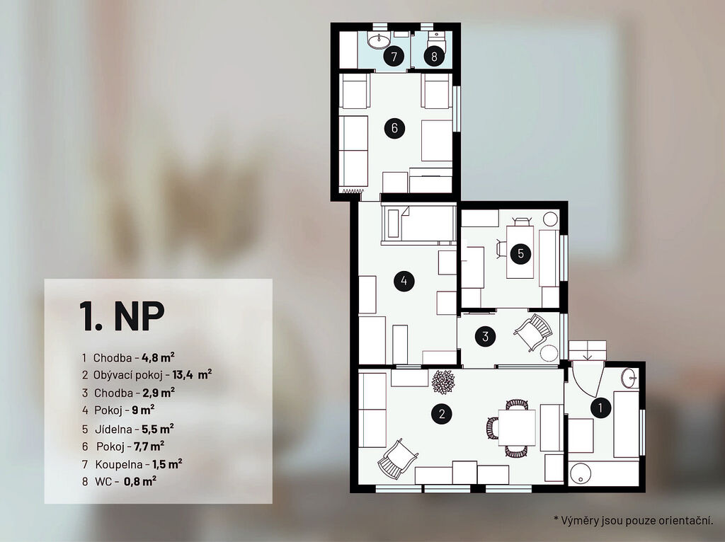 Dopravní dostupnost výborná - vlak, bus. V obci se nachází obchod, benzinová stanice. Jedná se o Ladův kraj, v nedalekých Hrusicích se můžete vydat po stezce kocoura Mikeše, mnoho dalších památek a aktivit. Vzdálenost do Říčan 10 min. jízdy autem, do Mnichovic 4 min., kde najdete veškerou občanskou vybavenost. Vzdálenost do Prahy 20 km po D1, do Benešova 15 km