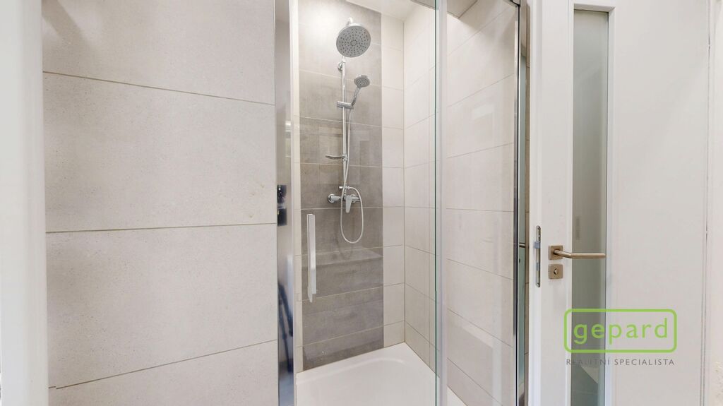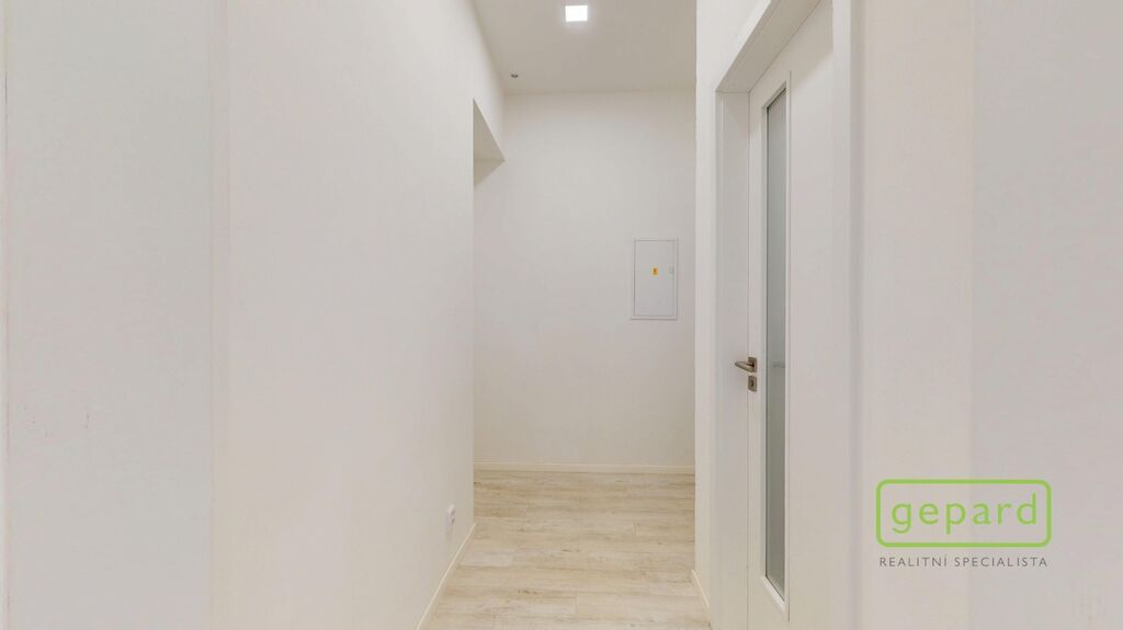 Podlaha tvořena z vinylových desek. Vnitřní omítka zhotovena vápenno-cementová, štuková. Dlažby a obklady keramické v celém rozsahu koupelny. Vytápění řešeno plynovým kondenzačním kotlem Geminox, který je odkouřen do komínového průduchu s přisáváním. Případně možnost využití přípravy na elektrokotel (HDO v rozvaděči). Internet přes optický kabel. Fond oprav činí pouze 2055,- Kč měsíčně.