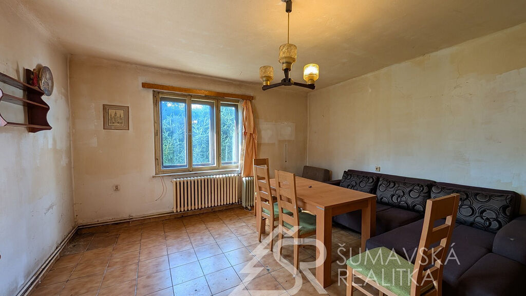 Popis: dům se nachází na horním konci obce Strašín u odbočky na Nahořánky v místě krásných výhledů na mohutný Žďánov a mystickou horu Sedlo s keltským hradištěm a rozhlednou. Na půdorysných rozměrech 9,4 x 9,6 m byl vystavěn asi už v poválečném období sympatický dům, který je částečně podsklepen a má sedlovou střechu. V přízemí se nachází byt 2+1 s prostornou vstupní chodbou. Dům je napojen na obecní vodovod (vodoměr je umístěn ve sklepě) i kanalizaci. Samozřejmostí je i zavedená i fungující elektřina. V půdním prostou je zatím nevyužitá půda, ale půdní vestavba by šla realizovat. Střešní krytina je z falcovaného plechu krytým nátěrem. Okna v celém objektu jsou dřevěná špaletová. K domu je přistavěna dílna. Na přívětivém a rovinatém pozemku je ještě přístavba s provizorním letním ubytováním s vlastním sociálním zařízením. Malý dřevěný sklad je vedle tohoto letního bytu. Celá nemovitost je po obvodu osázena vzrostlým živým plotem zajišťující soukromí a klid.