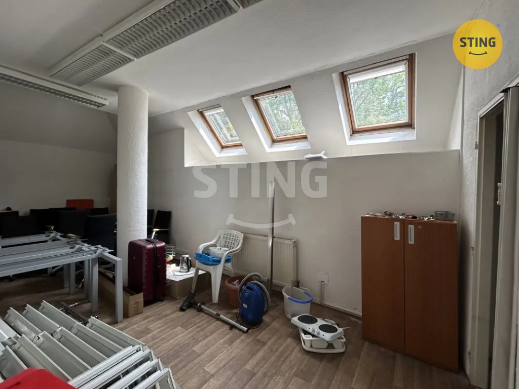 V 1. patře se nacházejí bývalé prostory realitní kanceláře STING. K dispozici jsou: