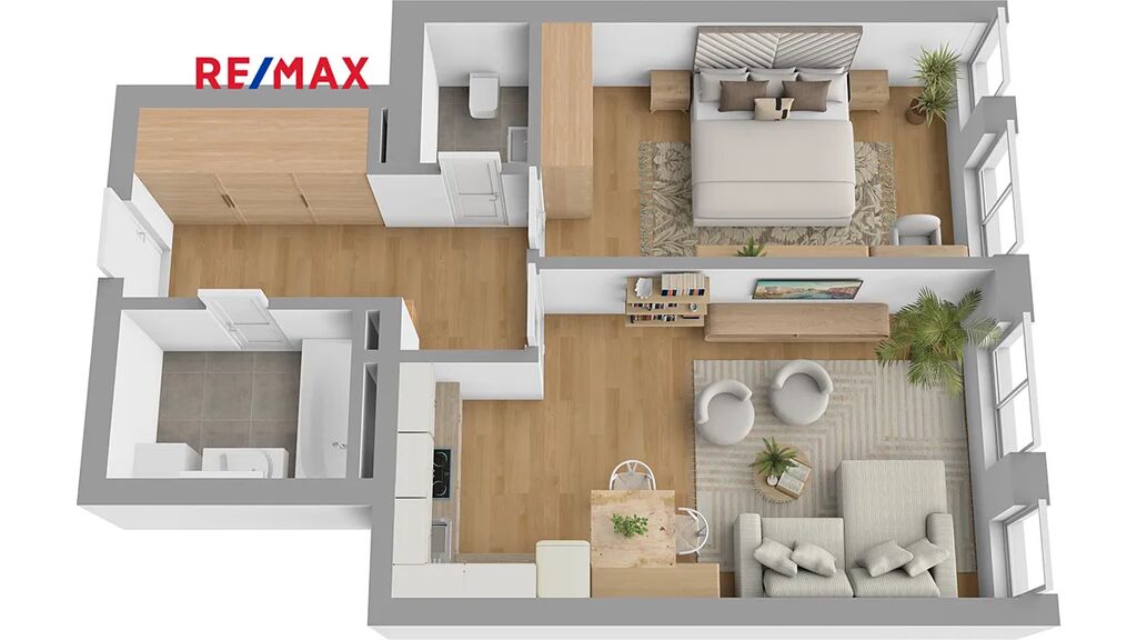Jednotka se nachází ve 2.NP bytového domu s výtahem. Díky své užitné ploše 56m² působí byt velmi vzdušně, prostorně a komfortně. Dispoziční uspořádání jednotlivých místností je nejlépe patrné z vizualizace ve fotogalerii. Byt je ve velmi dobře udržovaném stavu, disponuje také zánovní kuchyňskou linkou s vestavěnými spotřebiči.