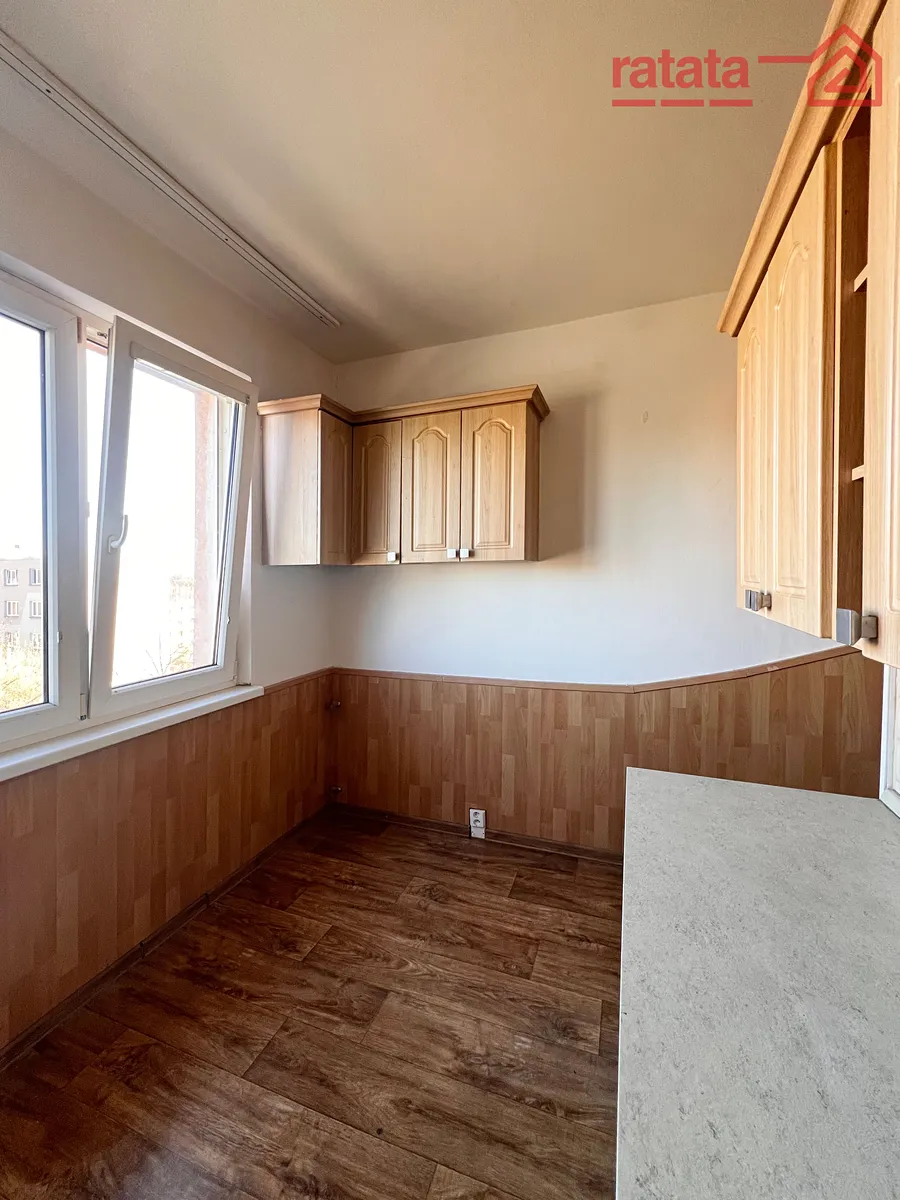 Pronájem bytu 2+1 s balkónem, který se nachází v 6. patře zatepleného panelového domu v ulici Chomutovská 1255, Kadaň.