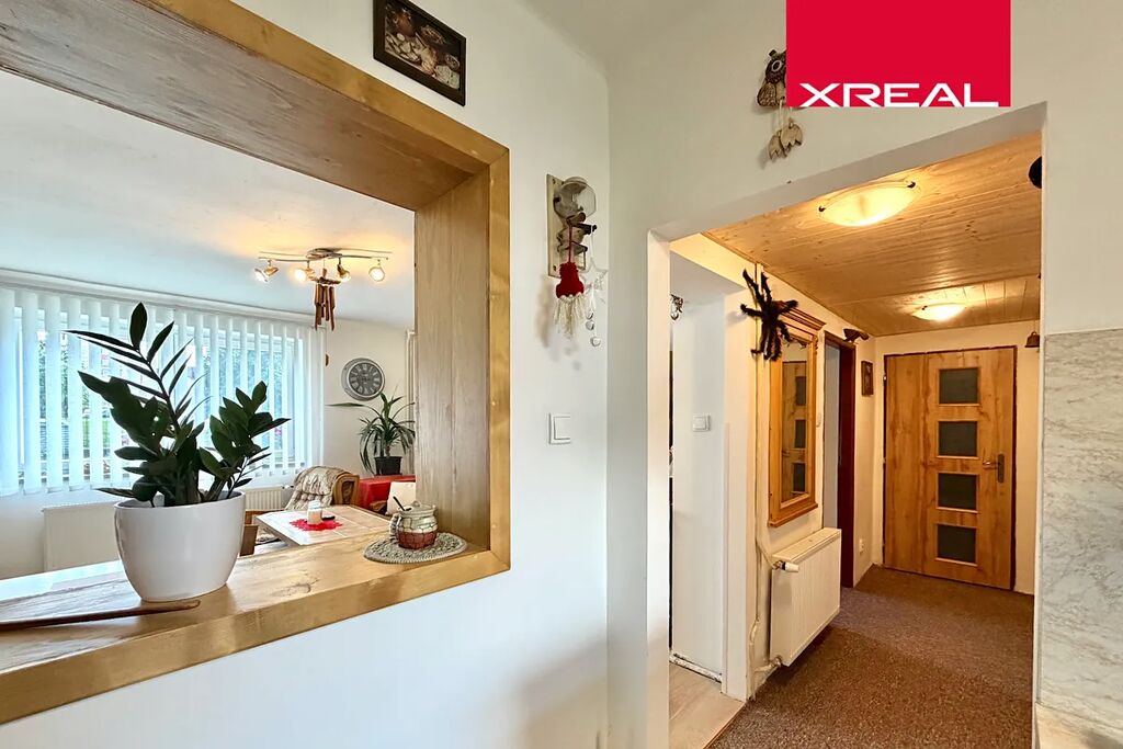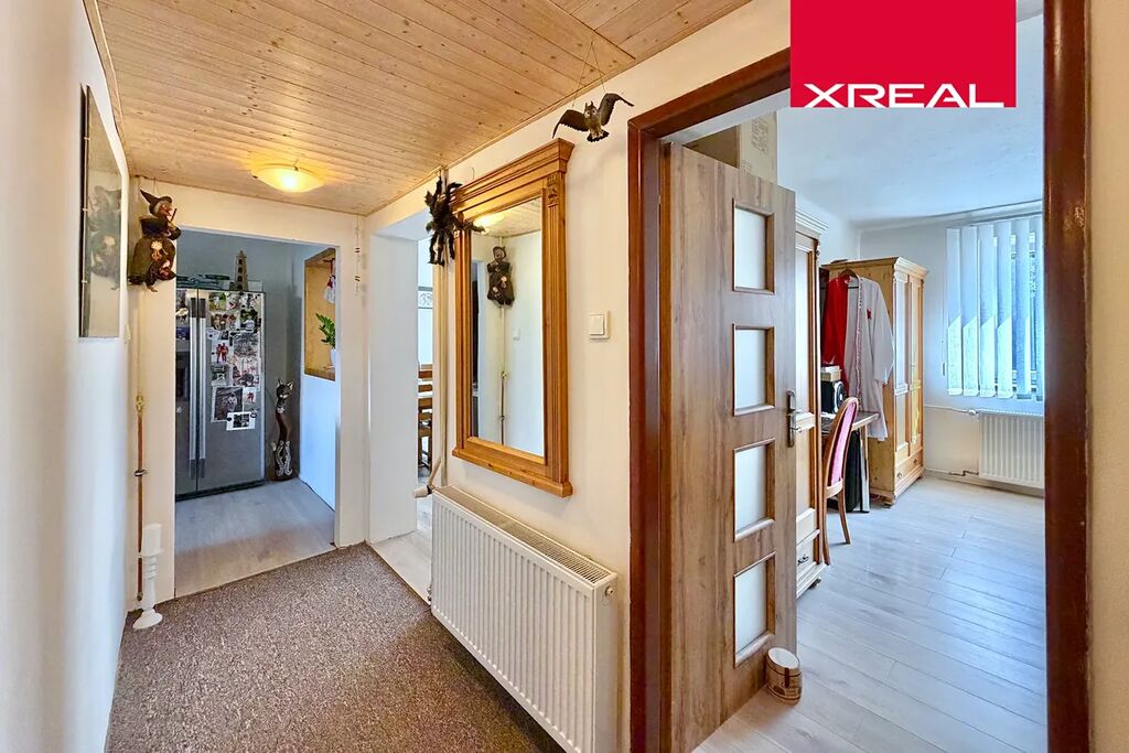 Rodinný dvoupodlažní dům s 2 bytovými jednotkami z roku 1960, na východě navazující na sousední dům. Podlahová plocha domu je 140,7 m2, samostatné zděné garáže 13,4 m2, krytého sezení 13,6 m2 a zahradního skladu 8,0 m2. Oba byty 2+1 mají samostatné vchody ze dvora a koupelnu, samostatné WC, zádveří, spíž, komoru a technickou místnost. Spodní byt je po rekonstrukci, horní v původním dobrém stavu. Oba byty jsou ihned použitelné. Objekt je napojen na veřejný rozvod elektřiny, plynu, vody a kanalizace. Energetická náročnost budovy je třídy G. Dům má centrální vytápění a ohřev vody plynovým kondenzačním kotlem.