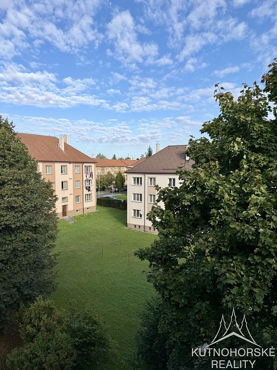 Z oken je nádherný výhled do parku a okolní zeleně, což dodává bytu velmi příjemnou atmosféru.
