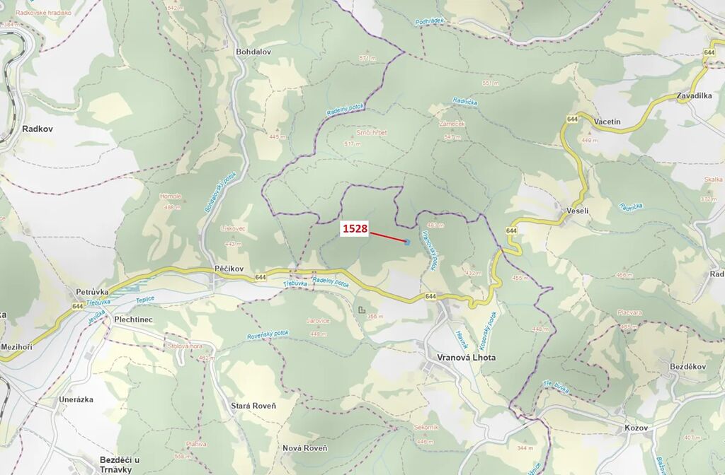 Lesní pozemek o výměře 5 323 m2, parcelní číslo 1528, podíl 1/1, katastrální území Vranová, obec Vranová Lhota, obec s rozšířenou působností Moravská Třebová, okres Svitavy, Pardubický kraj. Po těžbě.