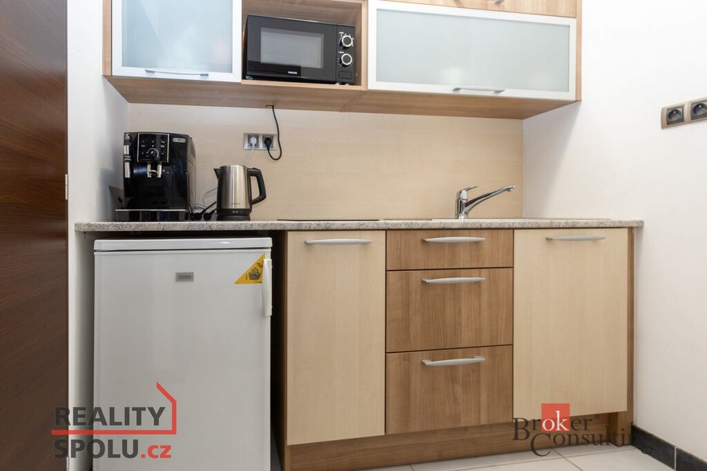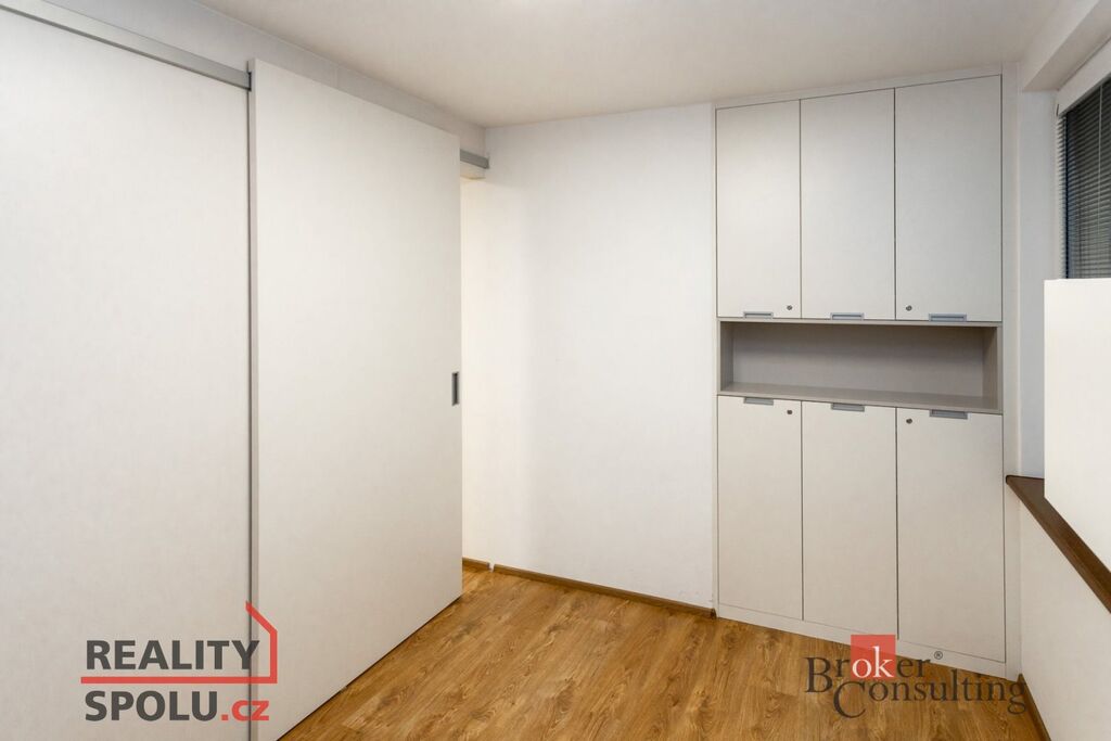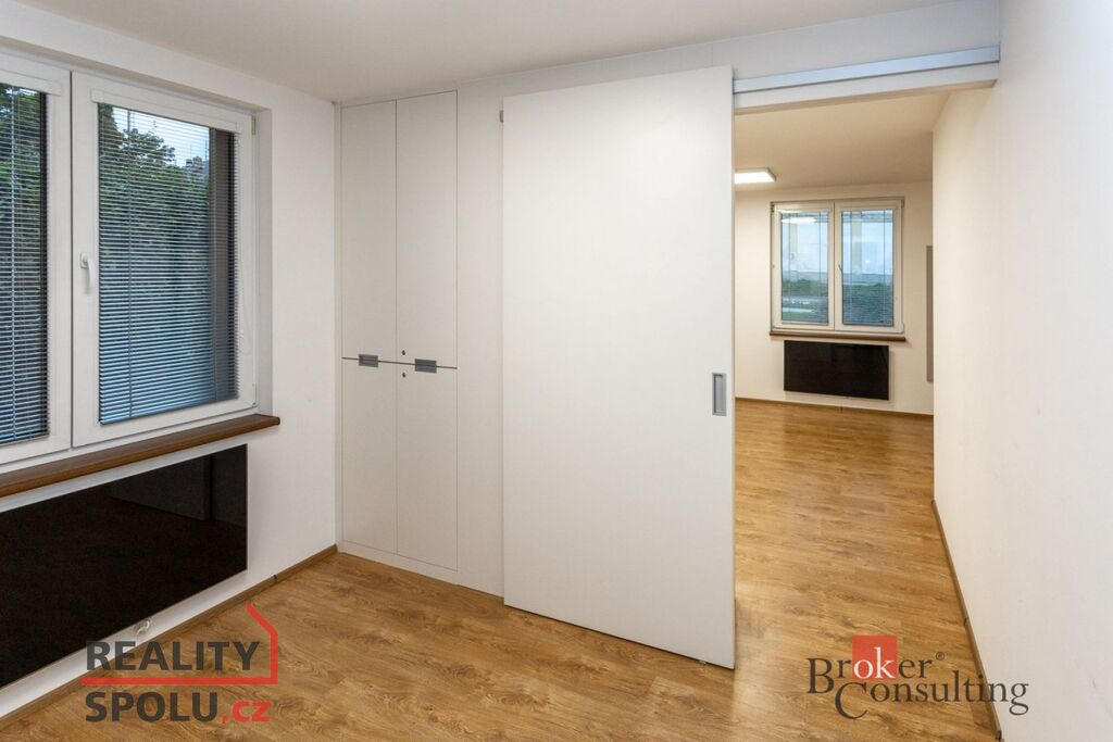 Nabízíme k pronájmu moderní a světlé kancelářské prostory o velikosti 29 m² ve velmi dobrém stavu. Místnost je rozdělena nábytkem na dva prostory, kde druhý lze zavřít posuvnými dveřmi. Nájemce má navíc k dispozici společnou zasedací místnost, kuchyňku a jedno vyhrazené parkovací místo přímo u objektu.