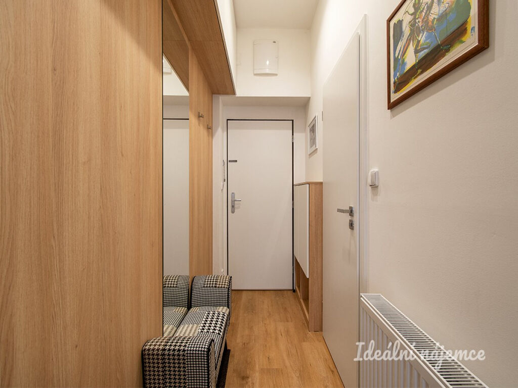 Byt se nabízí vybavený. Moderní kuchyně disponuje vestavěnou lednicí, myčkou, vestavěnou elektrickou troubou, varnou deskou a digestoří. Obývací pokoj je zařízen jídelním stolem s židlemi, konferenčním stolkem, televizní stěnou, televizí a komodou. V ložnici najdeme postel a šatní skříň. V moderní koupelně se nachází sprchový kout, umyvadlo, toaleta a pračka. Předsíň je vybavena šatní skříní.