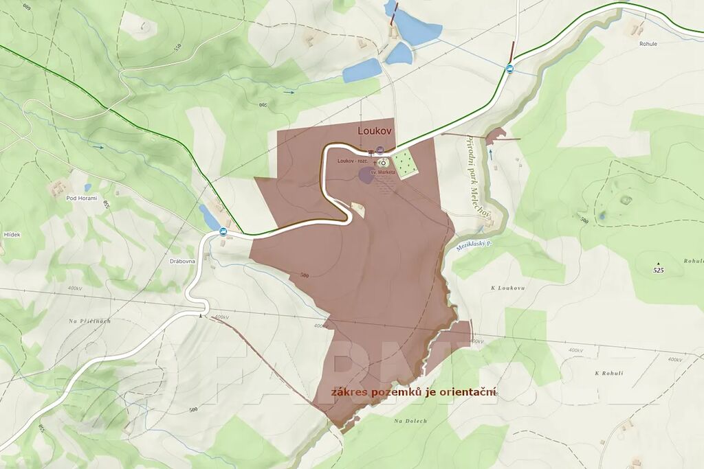 POZN: zákres pozemků v mapě je orientační, součástí nabídky jsou pozemky ve zjednodušené evidenci.