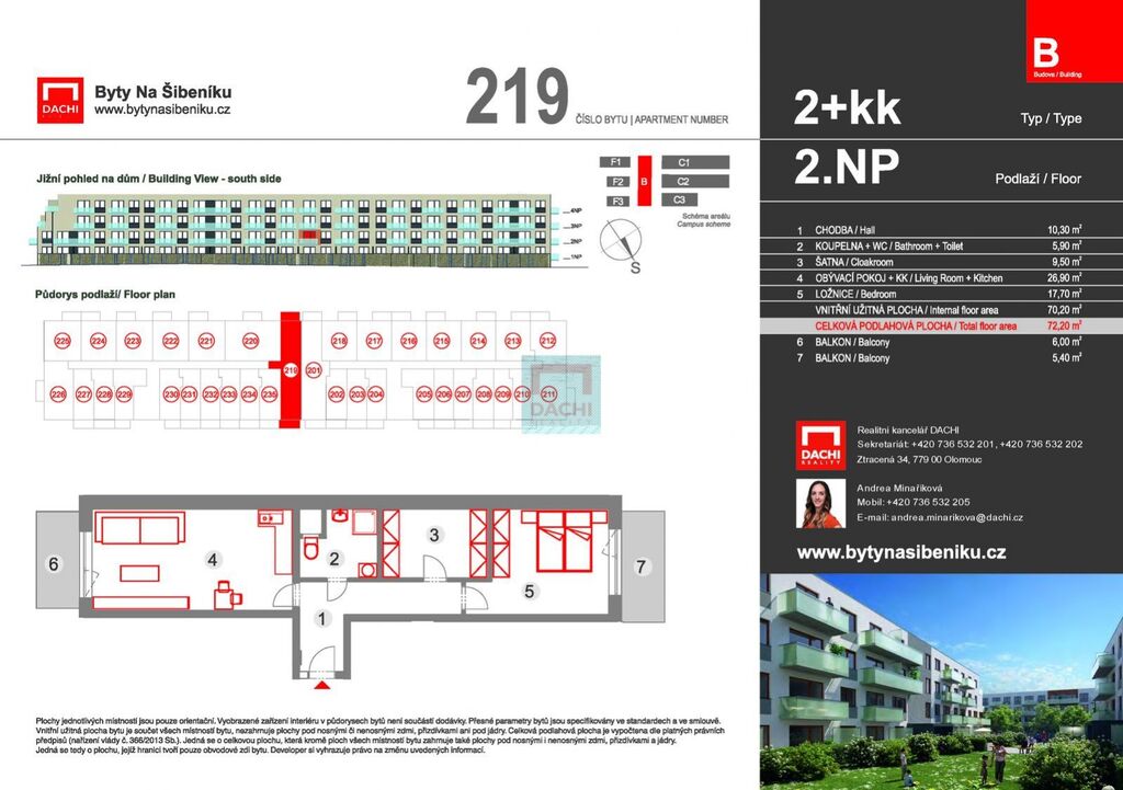 Navazujeme na úspěch první etapy a přinášíme vám jedinečnou příležitost pořídit si nový domov v atraktivním projektu Byty Na Šibeníku. DACHI, prodejce a partner developera, vám v rámci druhé etapy nabízí ke koupi moderní byt 2+kk (č. 219) o ploše 72,2 m s balkonem 11,4m. Byt se nachází ve 2. nadzemním podlaží nového bytového domu B, který je součástí šestipodlažního objektu se čtyřmi nadzemními a dvěma podzemními podlažími.