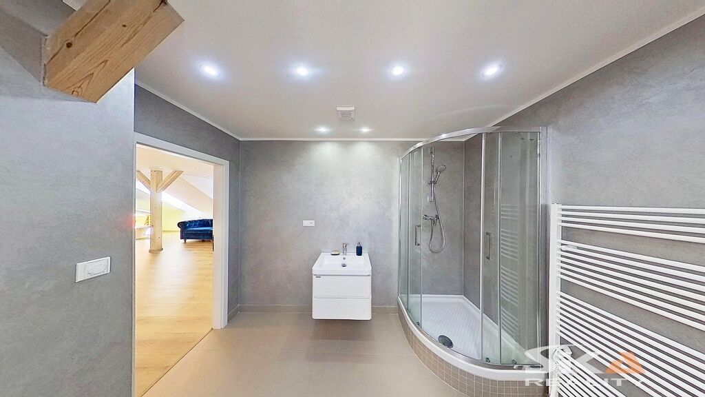 Nabízíme k prodeji bytovou jednotku v osobním vlastnictví o dispozici 1+kk (open space) s příslušenstvím a podlahové ploše 100,2 m2, která se nachází v podkroví domu s celkem třemi bytovými jednotkami, který je situovaný v širším centru města Louny, v ulici Jeronýmova.
