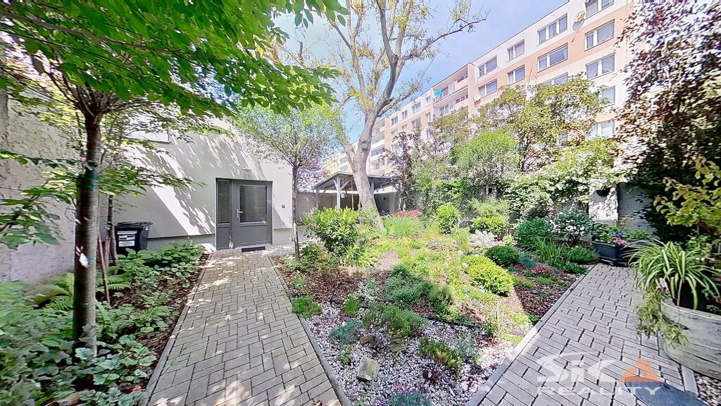 Společně s vlastníky dalších bytů lze užívat sklepní prostory, které sestávají ze dvou místností a jsou zde umístěny vodoměry a plynoměry pro jednotlivé byty a dále zahradu za domem přístupnou průjezdem. Zahrada je osázena okrasnými keři, v severo-západním rohu je umístěna krytá pergola s posezením, v protějším rohu se nachází zrekonstruovaný zahradní domek s rozvody elektrické energie a vody. Zahrádka je prosluněná a nabízí dostatek prostoru pro relaxaci.