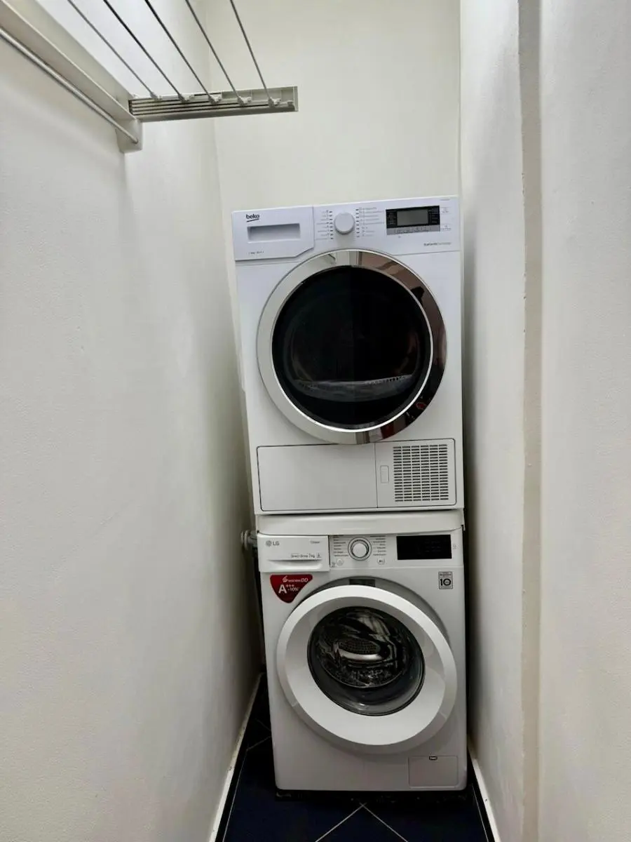 Dispozice jsou: vstupní předsíň s vestavěnou skříní, komora s pračkou a sušickou, toaleta s podlahovým topením,