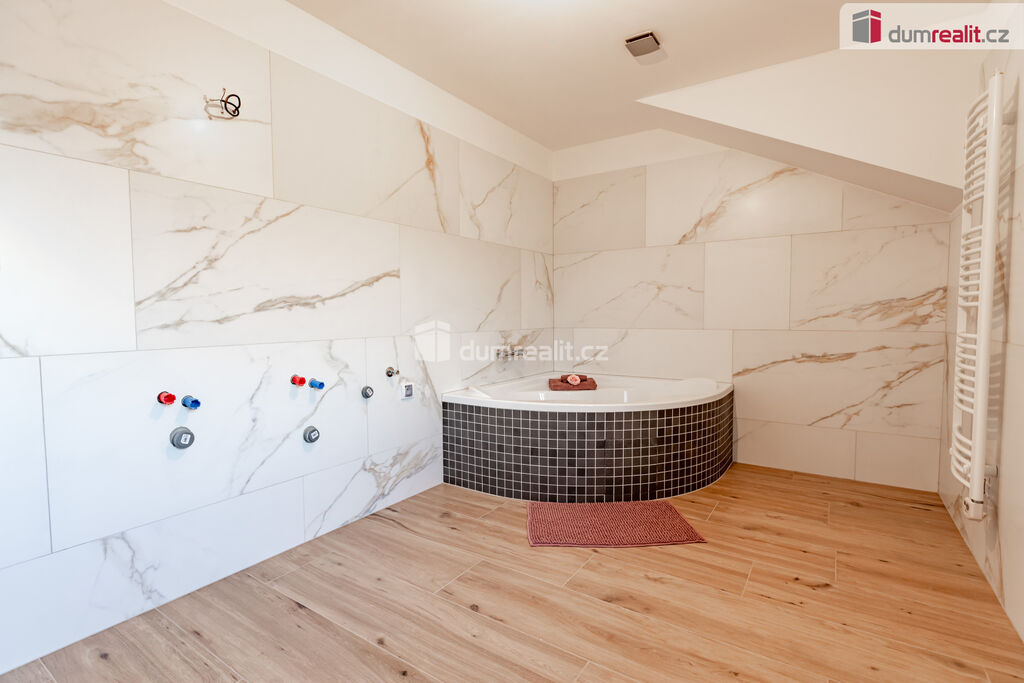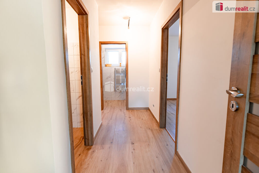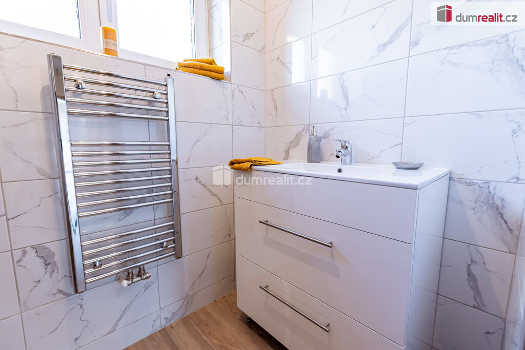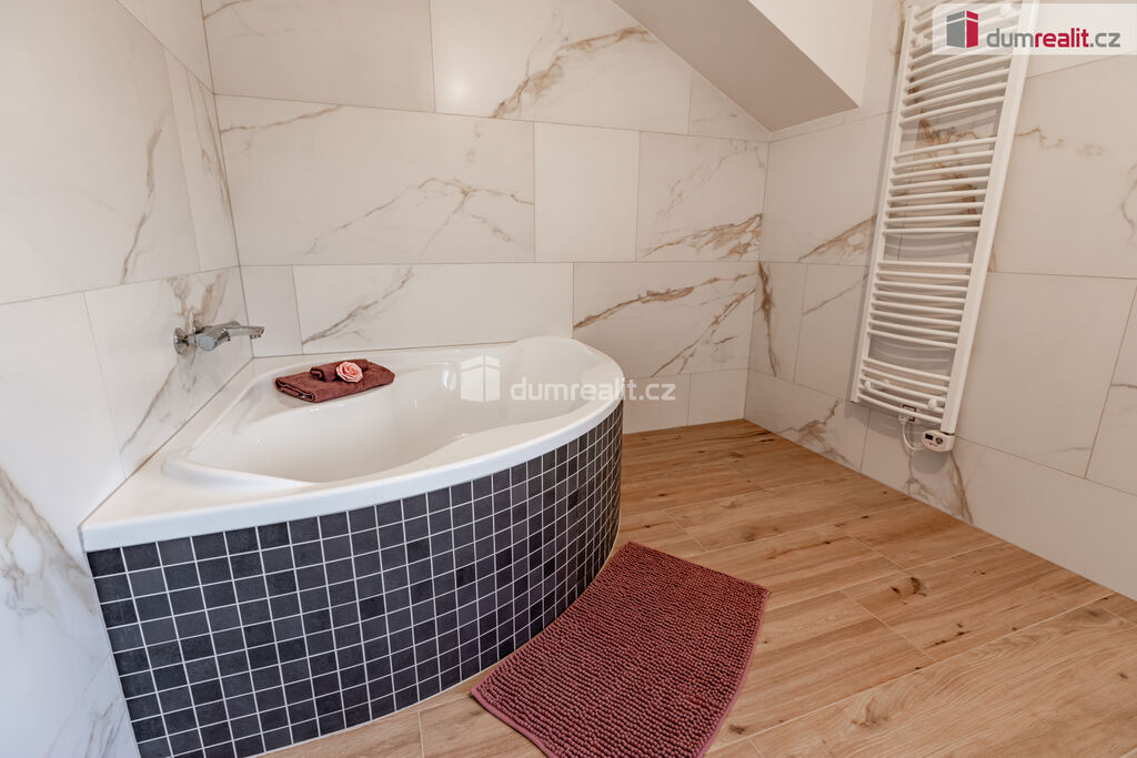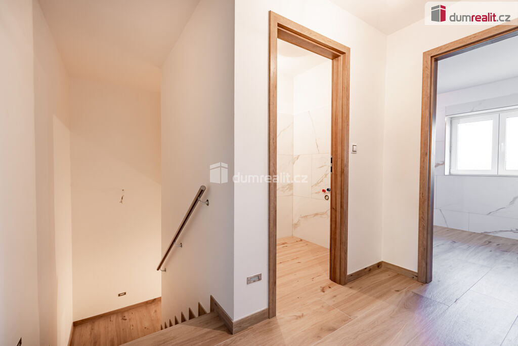 Ve 2. patře se nachází tři neprůchozí pokoje, wc, koupelna s vanou a vstup na půdu, kde je úložný prostor a revizní výlez ke komínu.