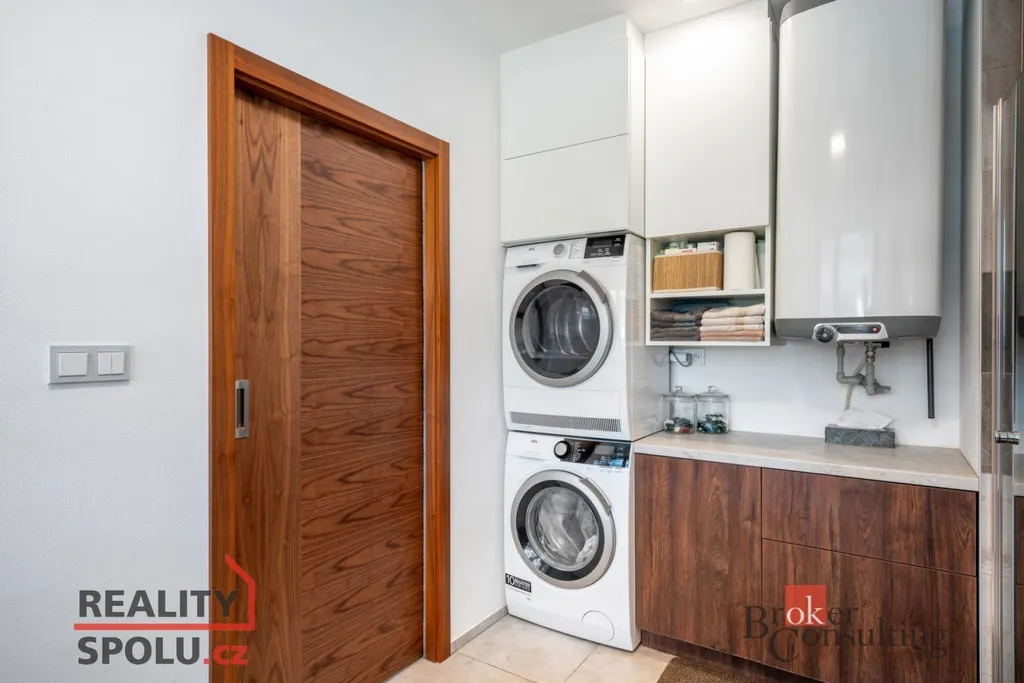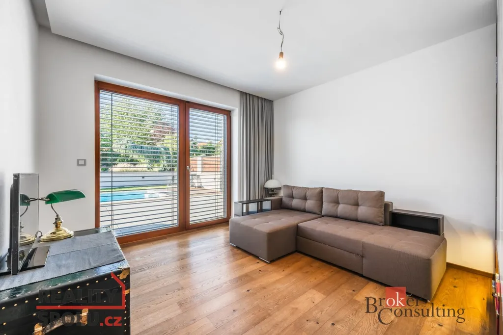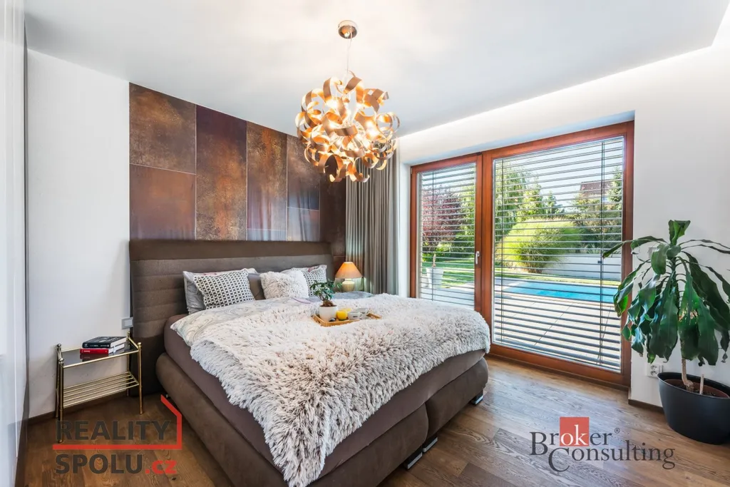 K domu náleží rozlehlá zahrada s bazénem, pergolou a zahradním domkem s úložným prostorem pro nábytek a zahradní náčiní. Již na první pohled Vás tento dům okouzlí svou propojeností se zahradou. Díky velký francouzským oknům a vzdušnému interiéru, je hranice zelené oázy klidu a obývaného prostoru téměř neviditelná. Ideální volba pro rodiny s dětmi nebo pro ty, kdo oceňují prostorné a komfortní bydlení.