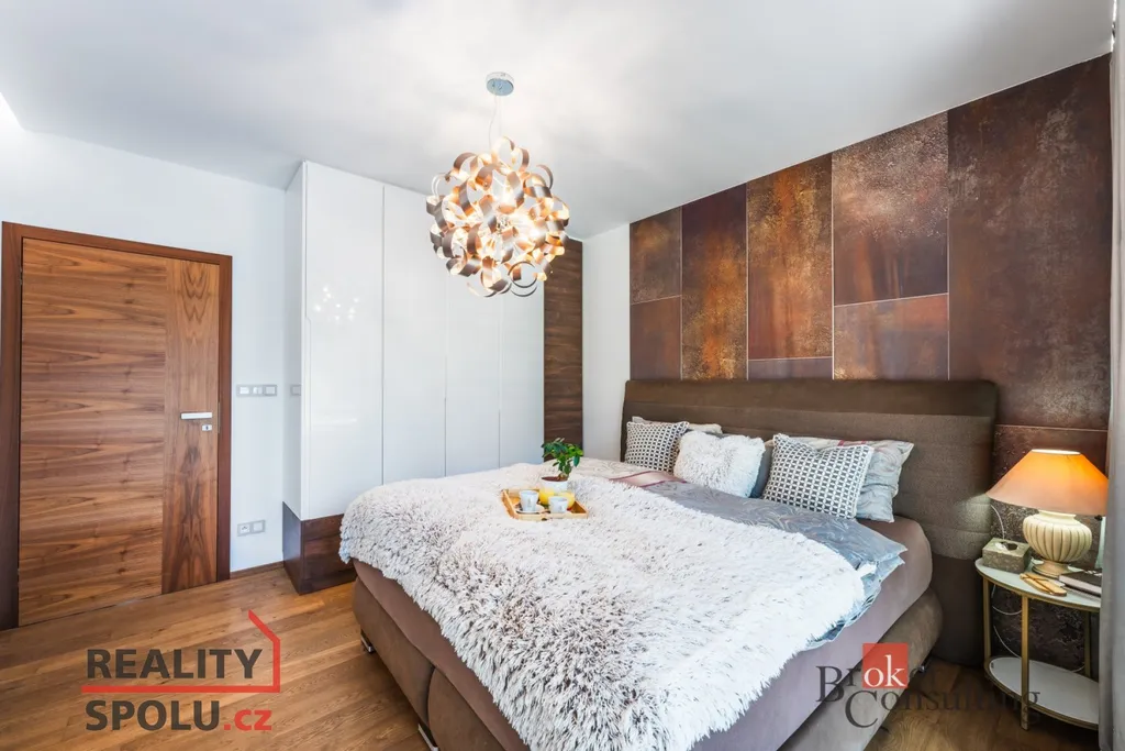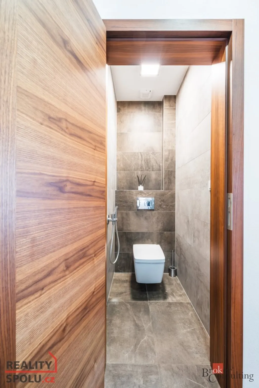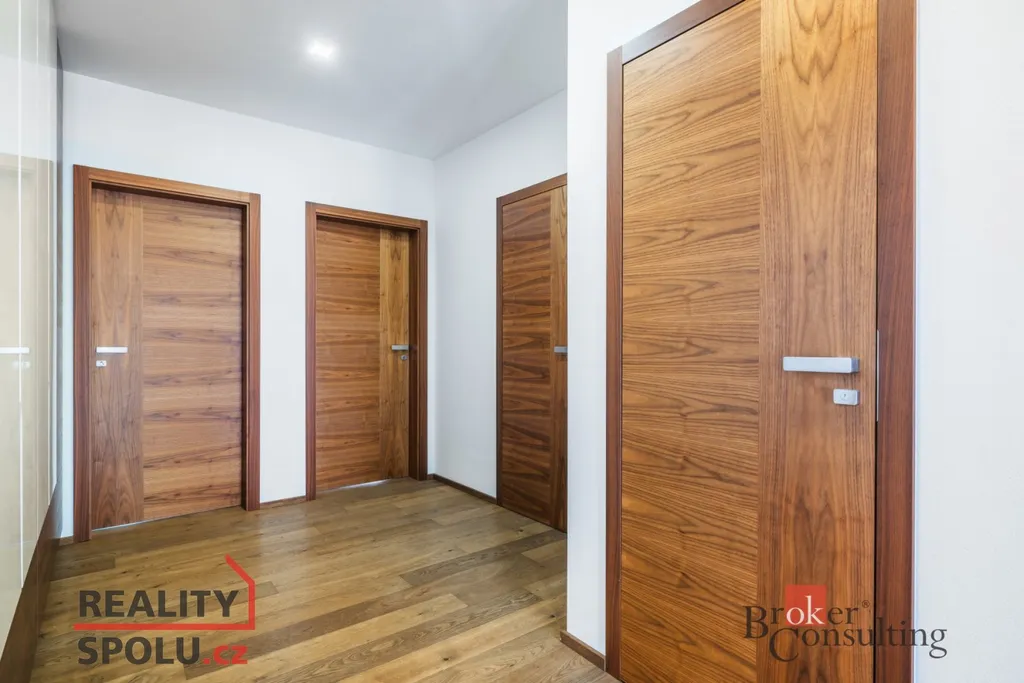 Po vstupu do domu Vás chodba zavede do dvou neprůchozích pokojů. Jeden z nich lze využít jako prostornou šatnu či ložnici, druhý je díky posuvným dveřím ideální jako pracovna, technická místnost nebo místo k relaxaci. Dále chodba pokračuje k samostatné toaletě s bidetovou sprškou a ke koupelně vybavené moderním sprchovým koutem a vanou. Zbývající dva neprůchozí pokoje jsou orientovány do zahrady a představují ideální volbu pro ložnice. Nabízejí nádherný výhled na bazén, jehož večerní odlesky jemně prosvětlují interiér a vytvářejí jedinečnou atmosféru klidu a luxusu.
