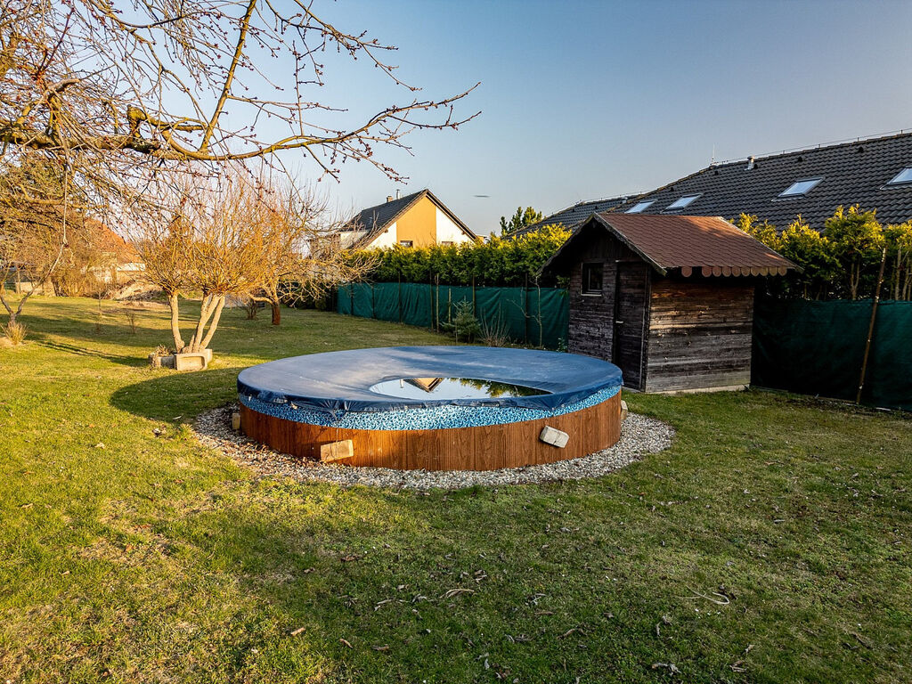 Rozlehlý pozemek o velikosti 2 214 m² (z toho 766 m² zastavěno) poskytuje dostatek prostoru pro zahradničení, relaxaci i dětské hry. Na zahradě najdete útulný zahradní domek, zděnou stodolu vhodnou jako dílnu, skleník, polozapuštěný bazén a ovocné stromy, které vytvářejí jedinečnou atmosféru. Velká garáž s ponkem a možnost parkování před domem i ve vjezdu zajistí pohodlí pro všechny vaše vozy.