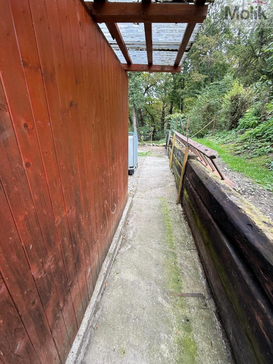 Nabízíme k prodeji zateplenou chatu, která se nachází v klidném prostředí lesa s nádherným výhledem a řekou protékající přímo pod chatou.