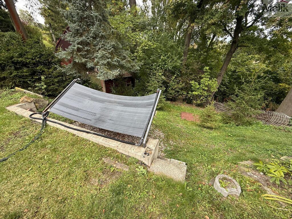 Součástí nemovitosti je bazén, zastřešená terasa ideální pro posezení, další veranda, skleník a nářaďovna.